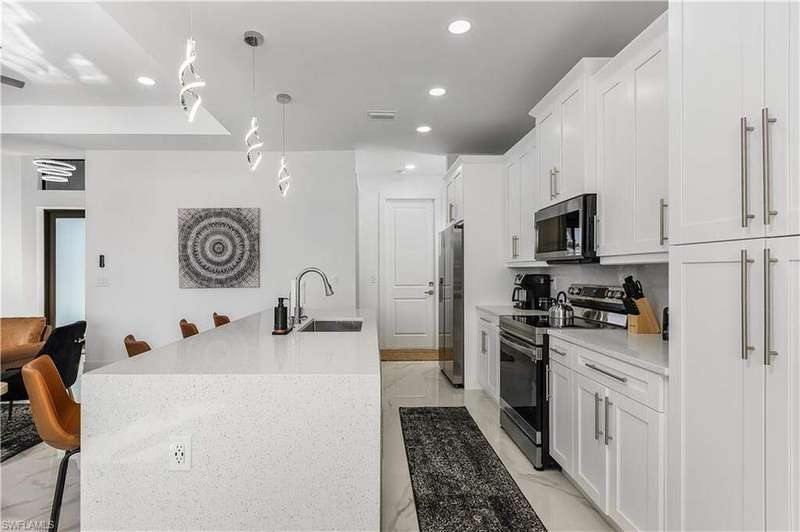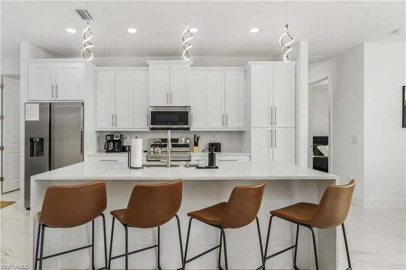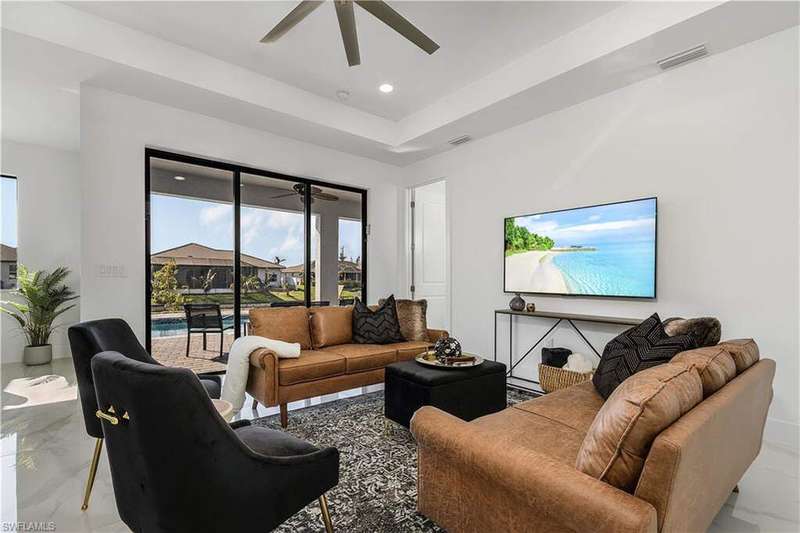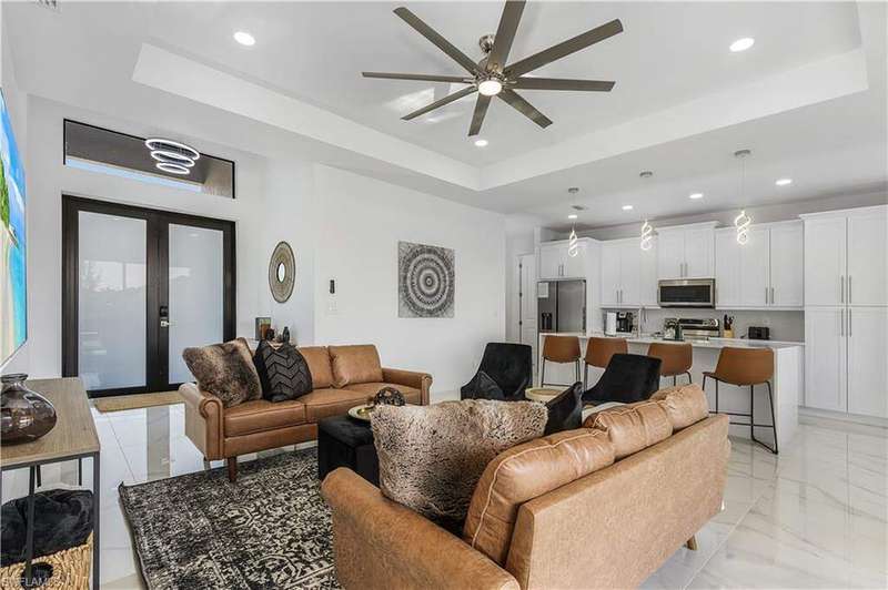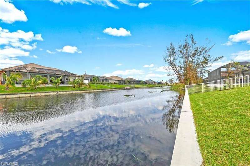 Welcome to Your Waterfront Paradise on a Beautiful Freshwater Canal! NO FLOOD INSURANCE REQUIRED. Nestled in a prime location, this stunning home exudes pride of ownership from the moment you arrive. As you approach, the double front glass doors open to reveal a bright, modern interior with soaring ceilings and high-gloss tile floors that set the tone for the rest of the home. The open-concept, split-bedroom layout is perfect for both everyday living and entertaining. Offering 4 spacious bedrooms and 2.5 bathrooms, this home is ideal for larger families and presents an incredible opportunity as an investment property. Currently operating as a successful Airbnb, it comes with upcoming bookings that can be transferred to the new owners, making it a truly turnkey property. Step outside and you'll find a large paved lanai with a sparkling inground pool, perfectly positioned to take full advantage of the southern exposure and soak up the sun all day long. The home also boasts an epoxy-finished garage floor, adding to its modern appeal. For water lovers, the freshwater canal offers endless opportunities for fun, whether you prefer kayaking, paddleboarding, or cruising on a paddleboat. No flood insurance needed. The large, fenced yard ensures complete privacy, making it the perfect place to unwind and enjoy the serene surroundings. This is more than just a home; it's where living begins-your own slice of paradise. Fully turnkey and ready for you to move in and start enjoying life on the water today! *VETERAN FRIENDLY*