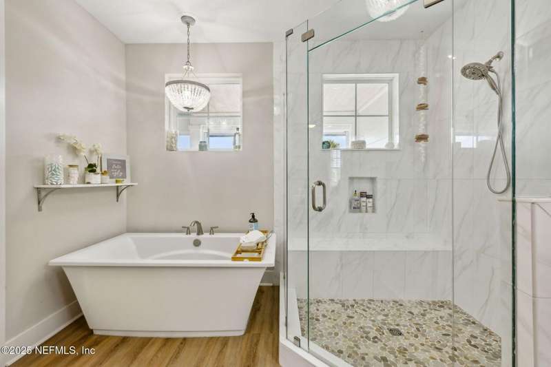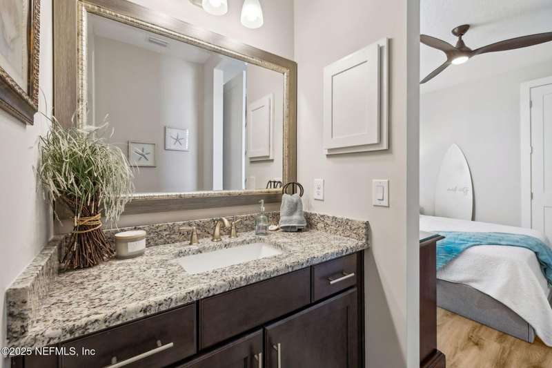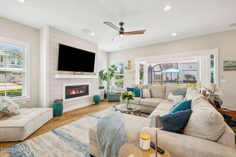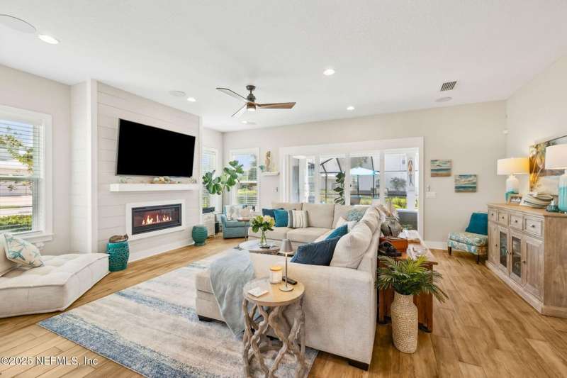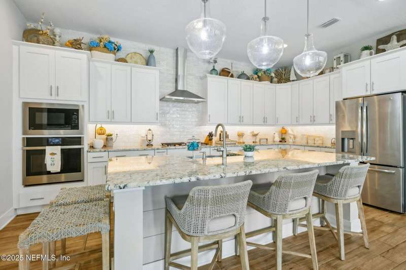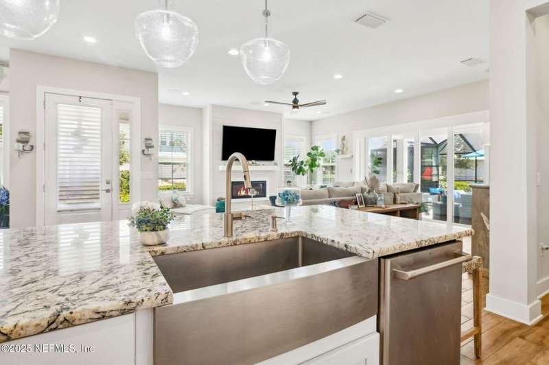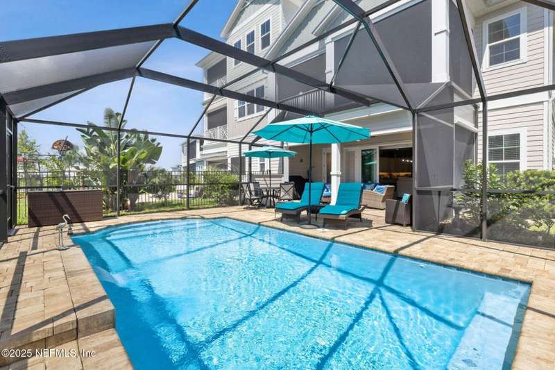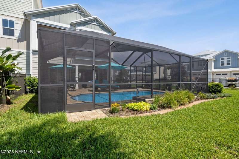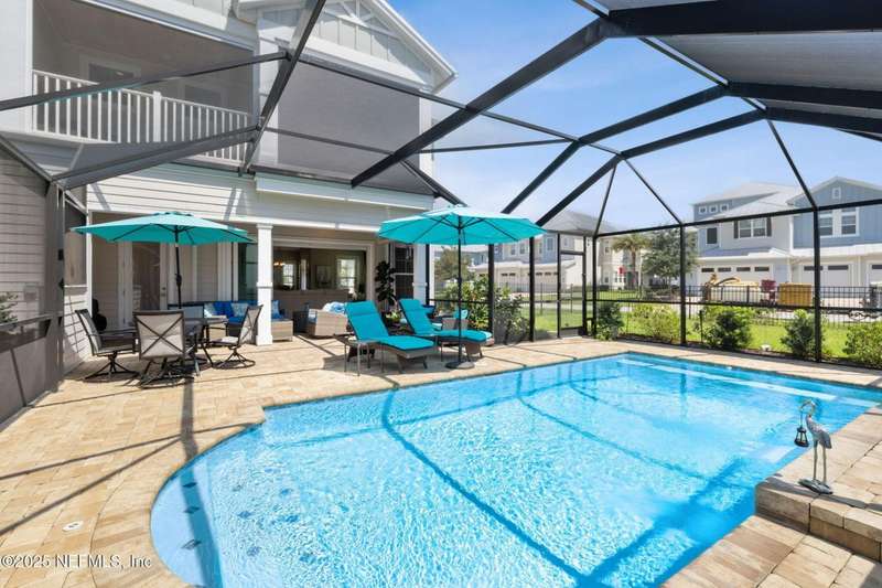 Don't miss this stunning Coastal Inspired POOL home located in the PRIVATE community of Beachwalk with its Crystal Clear Lagoon complete with sandy beach. Also enjoy the swim up bar, fitness center, water slides, tennis and pickleball, dog park and lots of walking paths. Never go on vacation again!! This stunning open floorplan leads to covered patio, POOL and screened lanai. Kitchen is a dream with large island, subway tile backsplash running all the way to the ceiling, upgraded counters and large walk in pantry. Large eat in area perfect for any size family. Family room is oversized and has gas fireplace and overlooks pool. Wine bar and 1/2 bath complete the downstairs. Retreat to your beautiful owners suite with large bath and all leading to spacious screened balcony. Office with French Drs, 2 bedrms w/ Jack N Jill bath complete the upstairs. Meet up with your neighbors at the clubhouse or relax on the beach-always something to do in this PRIVATE Beachwalk community.