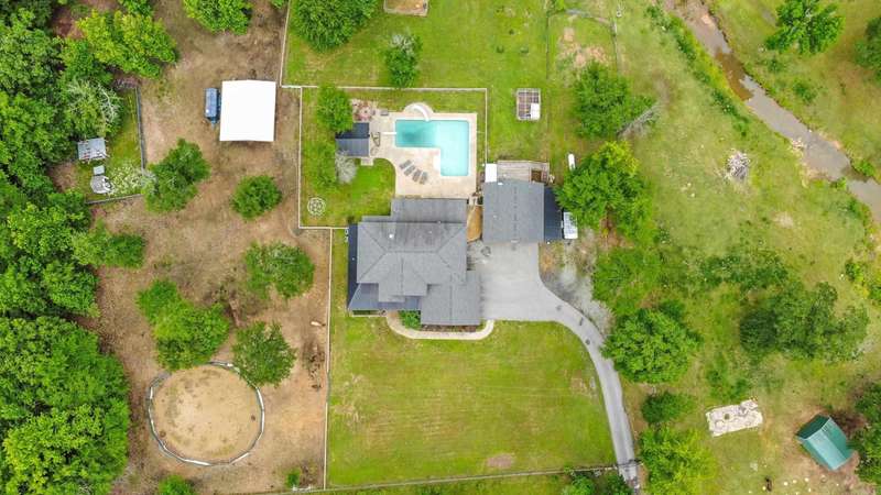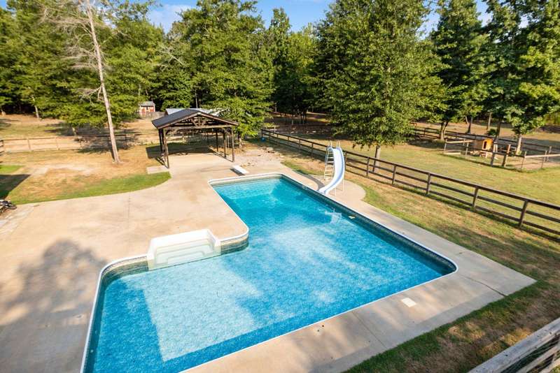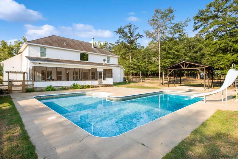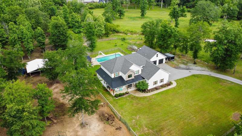 Escape the hustle and embrace refined country living in this breathtaking 3,900 sq. ft. custom home, perfectly situated on 7.21 acres just outside the city limits. FRESH PAINT |6 Bedrooms | 4.5 Baths | 2-Car Garage + Additional Garage with Guest Suite Gated Entrance & Grand Appeal: A private gated entry welcomes you to this striking home featuring natural stone exterior, nestled in a peaceful, scenic setting. Chef’s Kitchen: Designed for entertaining with a gas stove, double wall ovens, bar seating, walk-in pantry, and fridge that conveys. Primary Suite Sanctuary: Enjoy the luxury of his and her vanities, a walk-in tile shower, and a large soaking tub for ultimate relaxation. Outdoor Living at Its Finest: Step onto the screened-in back porch complete with a wood burning fireplace. Versatile Guest/Pool House: Located above the additional garage, this bonus living space is ideal for guests, a home office, or a private retreat. Spacious Laundry Room: Complete with washer and dryer that convey, and plenty of room. Inground saltwater pool with spacious patio, perfect for gatherings and relaxation. Call to schedule a private showing and fall in love with your future home!