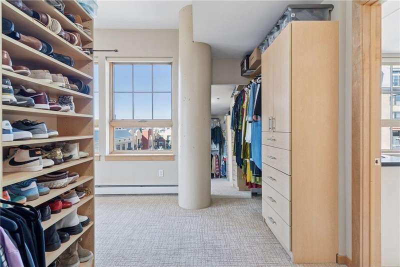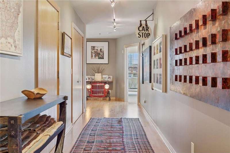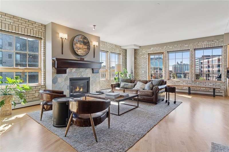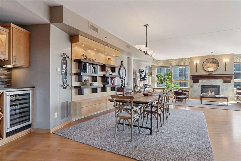 Welcome to Rock Island Lofts, the premier address in the North Loop. This rare 2-bedroom, 2-bathroom loft showcases three sides of windows, flooding the home with natural light and offering panoramic views of downtown Minneapolis and the vibrant neighborhood below. Once you enter the loft, you are greeted by an incredible gallery wall to showcase your art collection or heirloom photos. Enjoy open-concept living with hardwood floors, newer appliances(including wine fridge) a gas fireplace, and stone countertops that set the stage for modern urban comfort. The kitchen flows seamlessly into the dining and living spaces—perfect for entertaining or relaxing with the city skyline as your backdrop. Step out onto two private balconies, ideal for morning coffee or evening sunsets. The second bedroom features custom built-in bookcases and a Murphy bed, creating the perfect flexible space for guests or a home office. Many elegant updates including two-drawer beverage refrigerator, sink, bathtub, and shower fixtures. Additional highlights include two heated indoor garage spaces and abundant storage throughout. Set in the heart of the North Loop, you’re just steps from the Mississippi River, award-winning restaurants, boutiques, coffee shops, and the city’s best nightlife—all while enjoying the privacy and prestige of one of the neighborhood’s most sought-after buildings. Experience elevated loft living at Rock Island Lofts—where sophistication meets the energy of downtown Minneapolis.