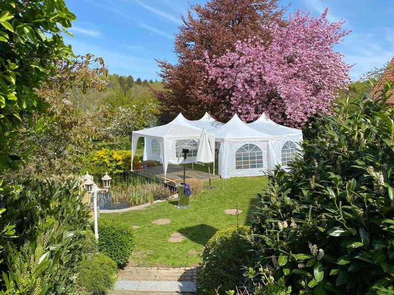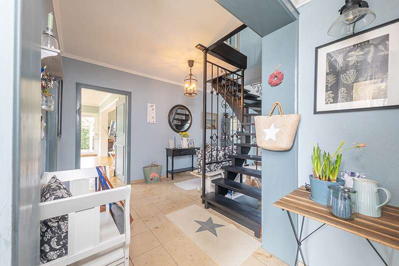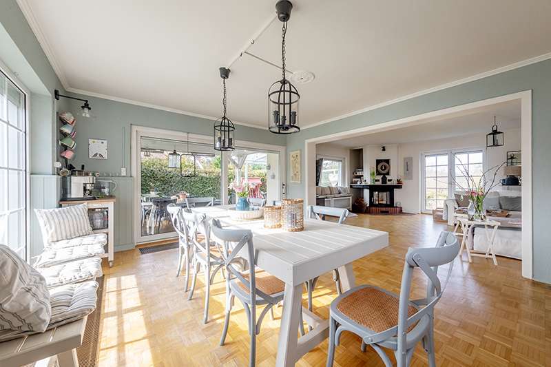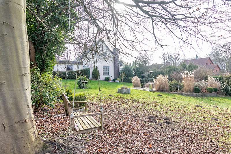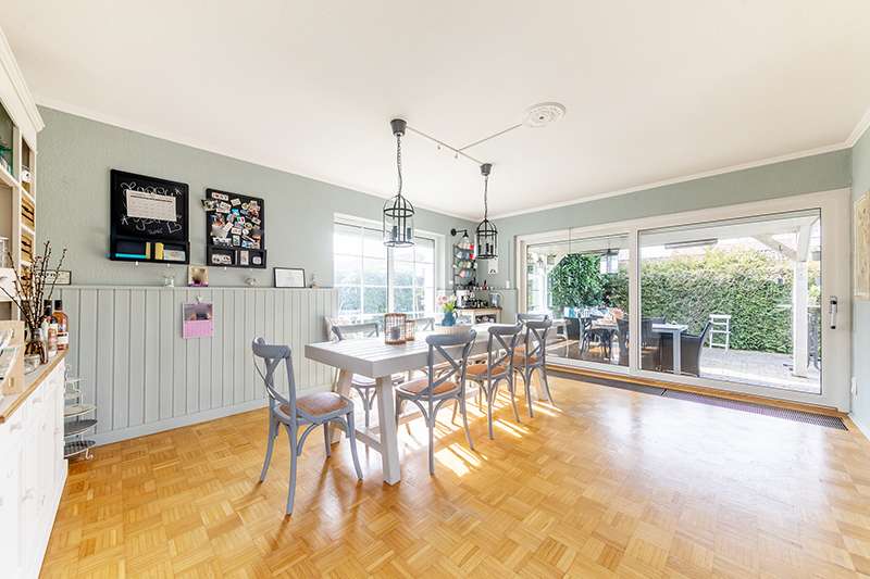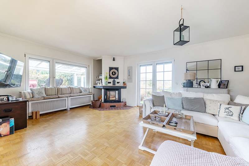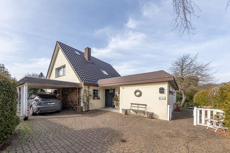 This well-kept property from 1971 offers you enough space for the whole family on a living area of approx. 160 m². The two-family house has a total of six rooms, including five spacious bedrooms, which promise a high level of living comfort. Thanks to extensive refurbishment in 2008, the house presents itself in an inviting and modern condition and promises a carefree future. The property extends over approx. 1437 m² of private land and offers plenty of space for leisure activities and relaxation thanks to its generous garden landscape. The garden is landscaped with a garden pond as well as various fruit trees, including an apple tree, a cherry tree and two plum trees. The enclosed plot area makes it ideal for families with small children or pets. Upon entering the house, you will first find yourself in the hallway, from which all other rooms lead off. The guest WC is to the right and the kitchen is to the left. A cozy corner, ideal for office activities, has been created under the stairs. The inviting and spacious dining and living area with fireplace offers access to the terrace and a wonderful view of the garden, which guarantees unobstructed views thanks to its location on the landscape conservation strip. A solid staircase takes you to the top floor, which has a bedroom, two children's rooms and a bathroom with bathtub. From the hallway you can reach the attic, which is insulated and carpeted, via a slide-in staircase. The basement offers further space for storage, heating, laundry room and a bedroom, e.g. for guests. The adjoining vacation apartment is currently accessible separately via its own entrance. A connection to the first floor of the main house is possible without any problems. Upon entering the apartment, you will first find yourself in the hallway, which is equipped with a pantry kitchen. From here, the shower room is to the left and the living room with access to the private terrace is to the right. Off the living room is the small, cozy bedroom. Ideal for older children who want to become independent or for renting out to generate income to pay off the financing. The gas central heating from 2004 provides pleasant warmth. External roller shutters are installed throughout the first floor for added comfort and security. There is space for your vehicles in a carport and other parking spaces directly in front of the house. The property was extensively renovated in 2008, when the façade, roof, insulation and windows were renewed. In 2013 and 2014, the entire house was painted and the kitchen and bathrooms were renovated. The vacation apartment was last completely renovated in 2017. The location of the house offers you an unobstructed view of the countryside, which further increases the residential value. Overall, this property impresses with a mixture of classic charm and modern furnishings, making it interesting for both families and couples in attractive surroundings. There are current plans and approvals as well as cost estimates for an extension to the house, which can be viewed on request - the building window is therefore not yet fully exhausted and offers attractive extension possibilities. Arrange a viewing appointment today to see the advantages of this house for yourself - we look forward to hearing from you!