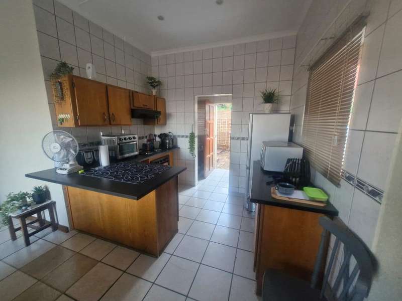 This stunning 3-bedroom home offers comfort, style, and functionality – perfect for modern family living. The open-plan design features a spacious lounge, dining area, and a sleek, modern kitchen with a separate scullery and laundry area. The main bedroom boasts a luxurious en-suite bathroom and air conditioning, while the two additional bedrooms are generously sized and share a second stylish bathroom. All bedrooms offer ample cupboard space. Outside, enjoy a manageable, low-maintenance garden, ideal for relaxation or entertaining. The property also includes a JoJo tank, a automated garage, and a carport for extra parking. Located in a secure, well-known upmarket complex, this home offers peace of mind and a great community atmosphere. It’s close to all major amenities, making it the ideal choice for families seeking comfort, security, and convenience. Don’t miss out on this gem – contact us today fir a viewing