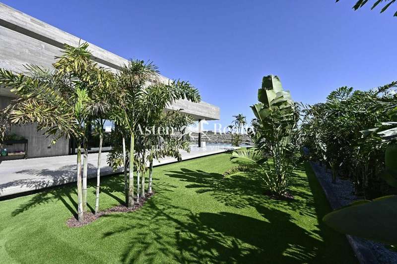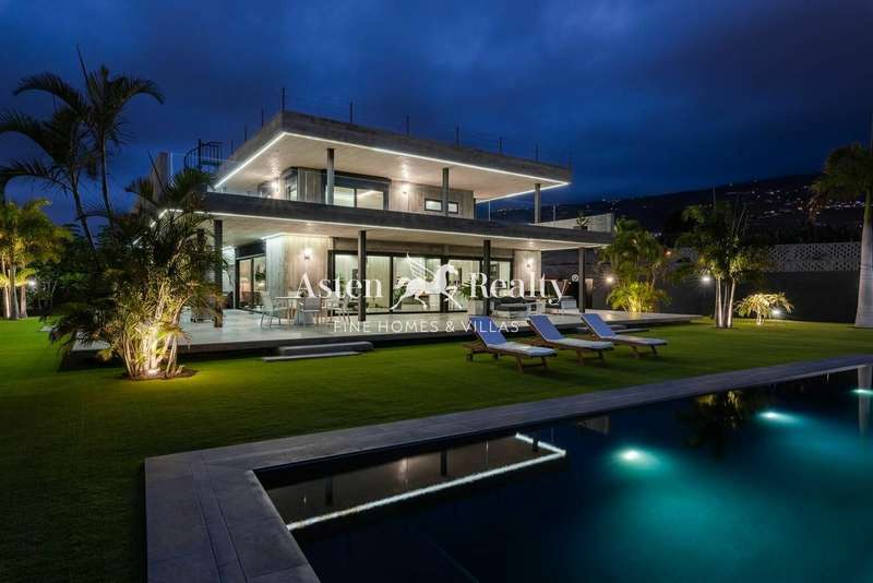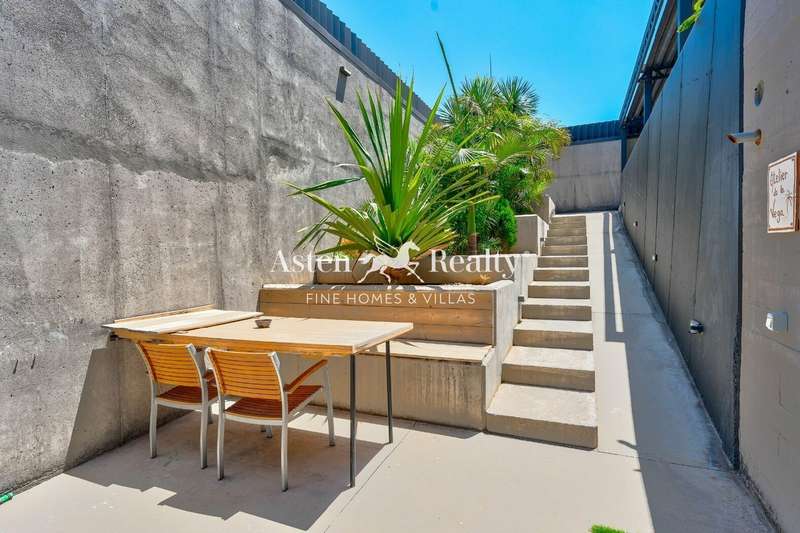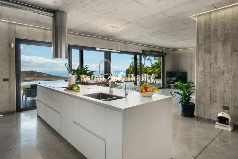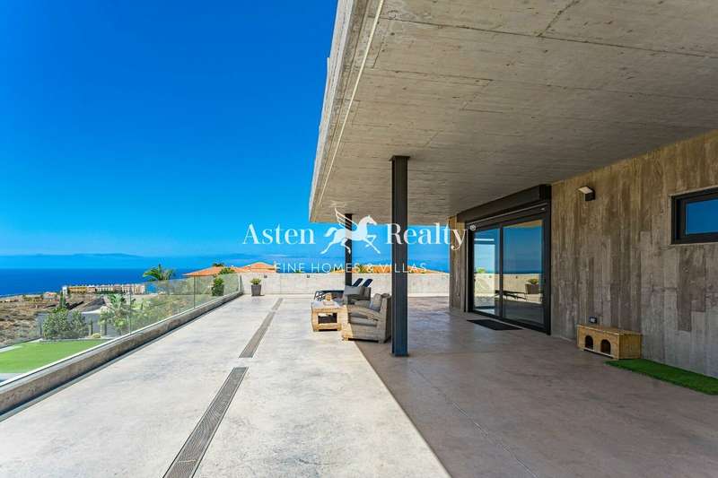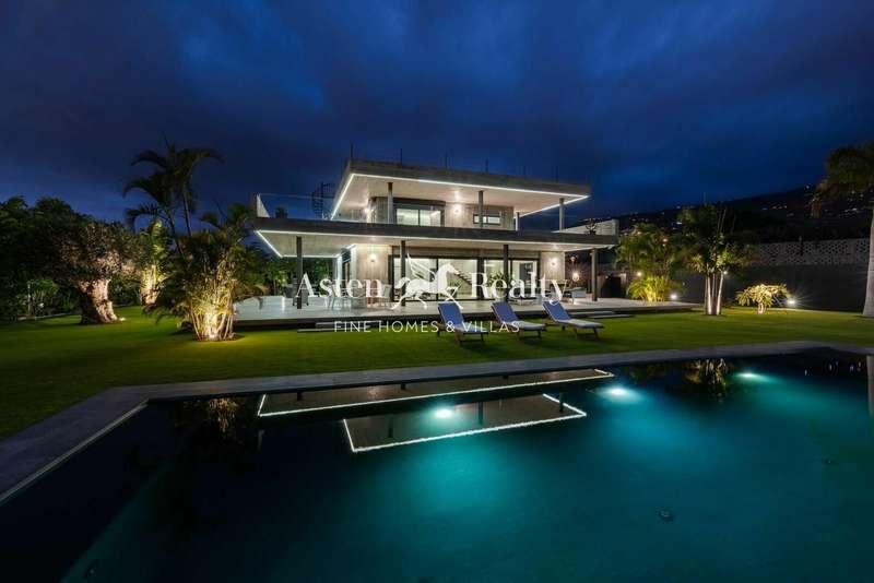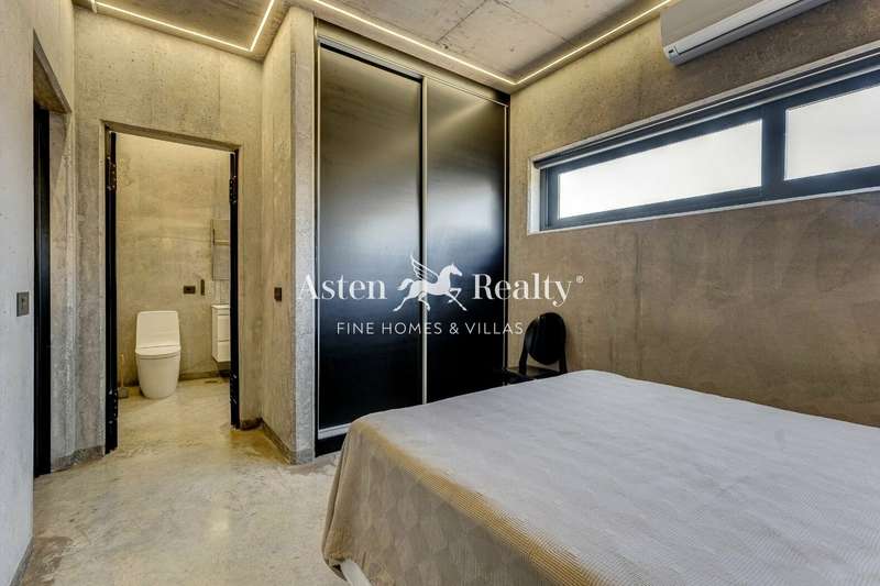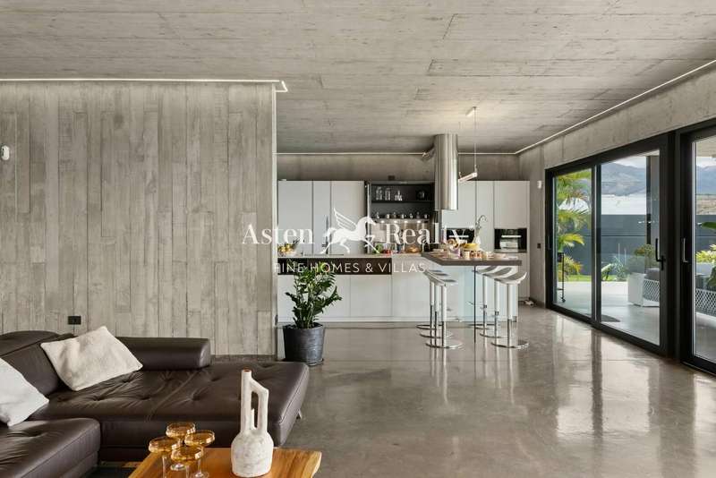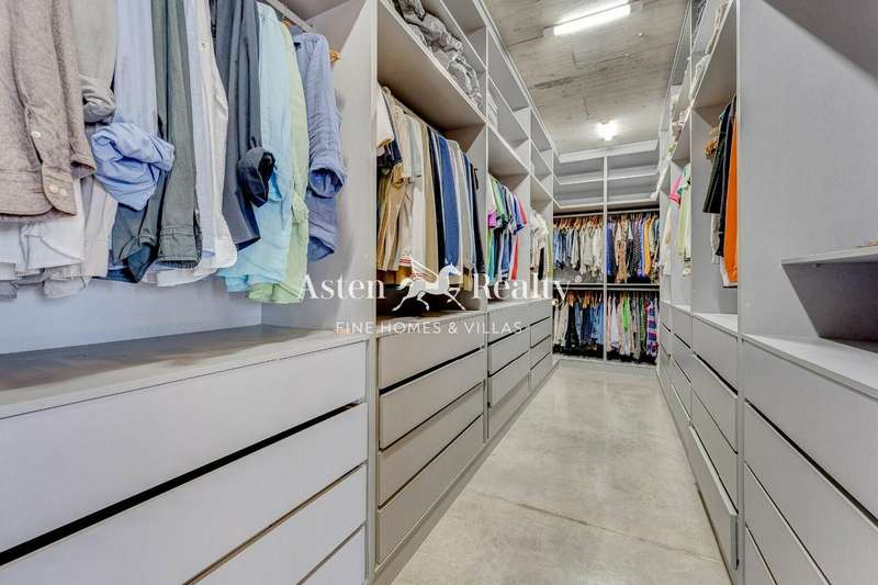 Minimalist brutalist-style villa. The villa was designed on three levels, has a lift, open, bright spaces and is equipped with the latest technology. In the spacious outdoor area there is a large heated infinity pool with stunning sea views, a toilet, a cosy covered area and an exclusive pool house. The villa has a spacious living room with a high-quality open-plan kitchen and a modern home cinema. Each bedroom has its own en-suite bathroom and there is an additional toilet.