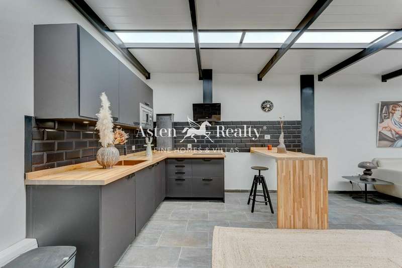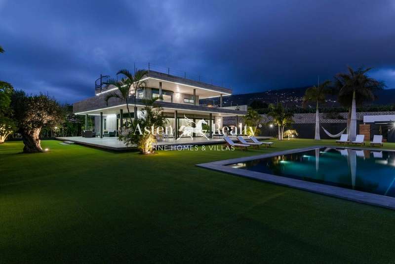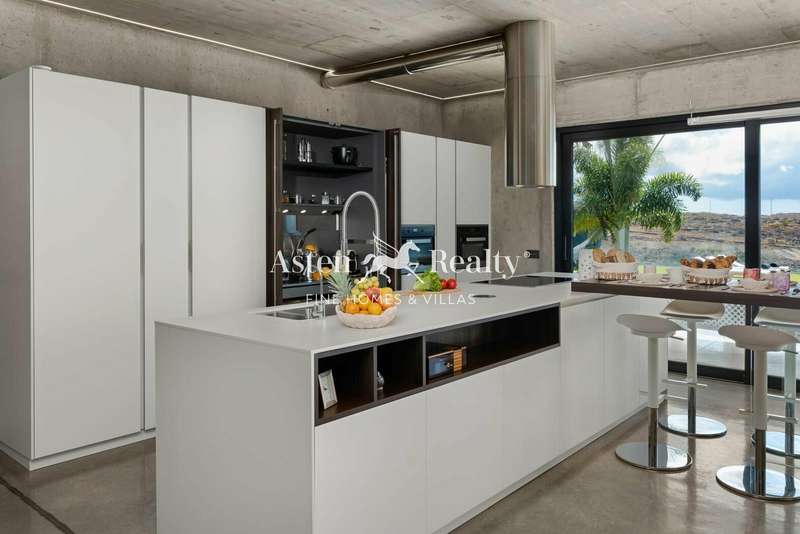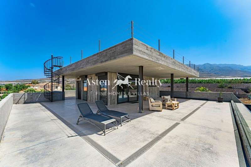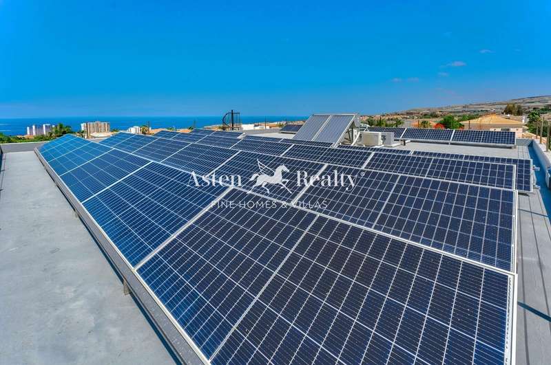 Smart home system, air conditioning. On the roof there are 30 solar panels for water and electricity, an electricity production panel with two batteries for night-time use, burglar-proof windows, a garage for two vehicles, an alarm system and a lift.