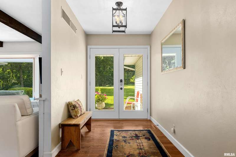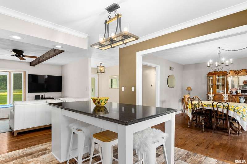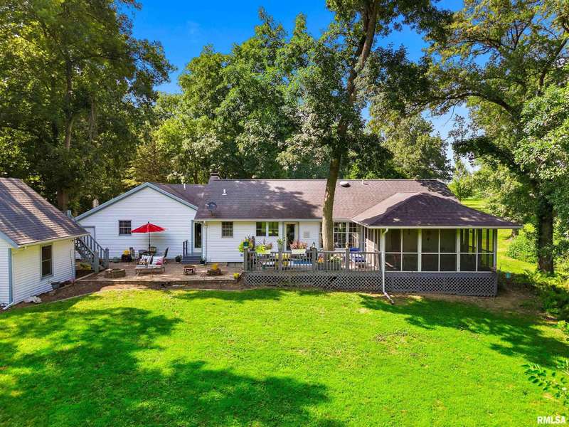 Welcome to your peaceful country retreat on over 3.5 acres in the sought after Dunlap Schools! Nestled down your own private gravel lane with winding wooded trails for hiking, exploring and enjoying the country ambiance. This spacious 4 bedroom/3.5 bath features a bright open floor plan with an abundance of natural light, hardwood floors, beamed ceilings and a brick hearth fireplace in living room.. Gorgeous updated kitchen with Amish cabinetry, quartz counter tops, pantry, island and built-in roll out shelving for spices. Three sheds or animal enclosures-- ideal for chicken, goats or 4-H projects. Finished walk out lower lever featuring a huge family room, full bathroom, laundry and tons of storage. The main floor primary suite offers private access to a large screened-in porch and an oversized deck—your own quiet morning escape and evening paradise. Do not miss this rare opportunity to own your own slice or paradise! Schedule your showing today. This one won't last long!