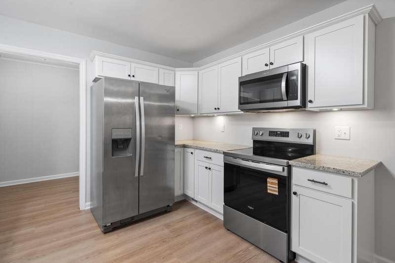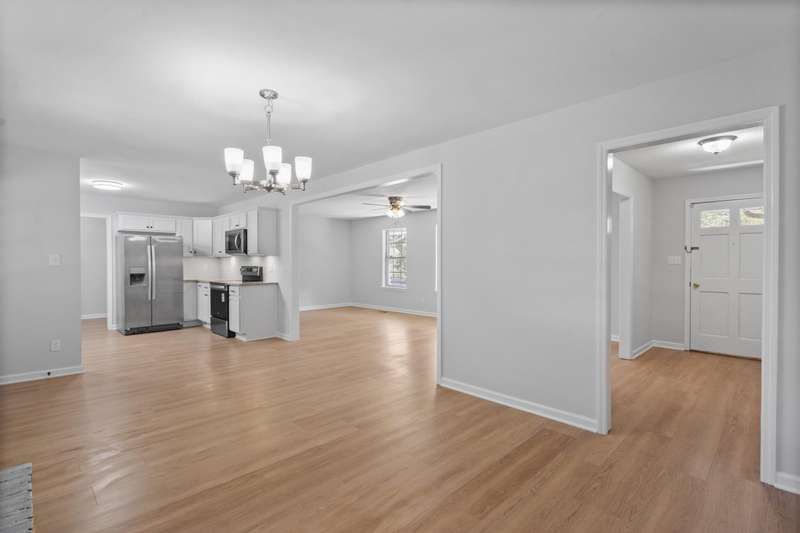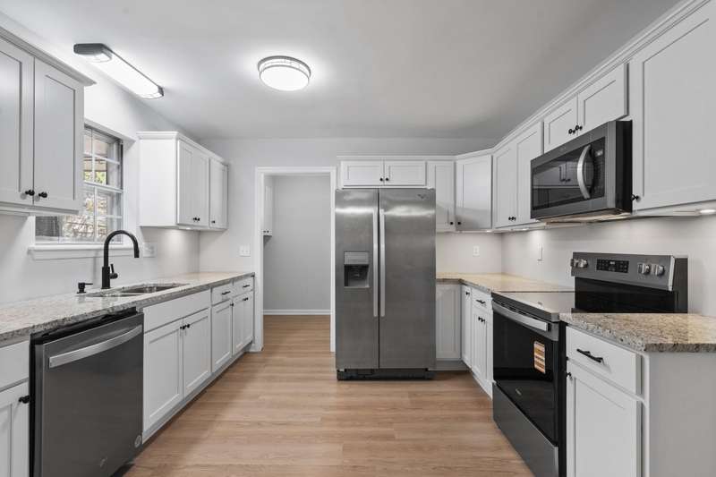 Welcome home! This beautifully updated 3-bedroom, 2-bath home offers 1,682 sq. ft. of comfortable living space you'll fall in love with. Step inside to find fresh paint and new flooring throughout, giving the home a bright and modern feel. The kitchen shines with brand-new cabinets, granite countertops, and new stainless appliances -including a stove, microwave, and dishwasher-perfect for cooking and gathering with family. The kitchen opens up to a large dining room/den featuring a cozy wood-burning fireplace, creating the perfect space for relaxing or entertaining. Both bathrooms feature new vanities for a fresh, clean look. Enjoy quiet evenings on the screened-in back porch overlooking the backyard. With a newer roof (approx. 3 years old) and HVAC (approx. 9 years old), you'll enjoy peace of mind for years to come. Central air and gas heat keep you comfortable year-round. This home is move-in ready and waiting for you.