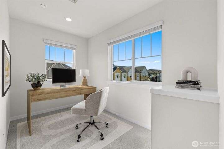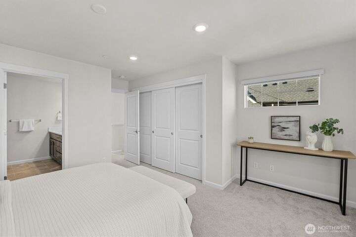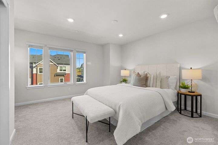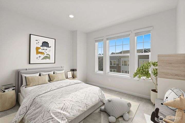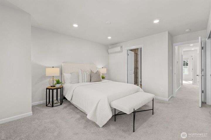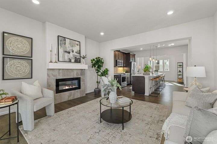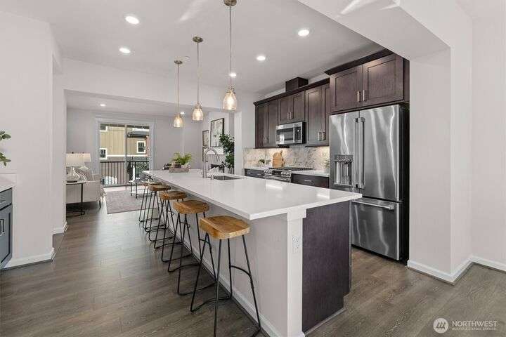 Sleek architecture and refined comfort define this 2024-built end-unit residence in a quiet, convenient setting. Designer-selected “Classic Canvas / Symphony / Encore” finishes pair beautifully with Café GE appliances and a 50-gallon hybrid hot water system. A light-filled layout offers a dedicated tech space, upper-level laundry, and a lower-level suite ideal for guests or extended living. The private patio invites outdoor dining and relaxation. Low HOA dues cover essential maintenance for carefree living—just moments to Costco, parks, and award-winning Lake Washington schools.