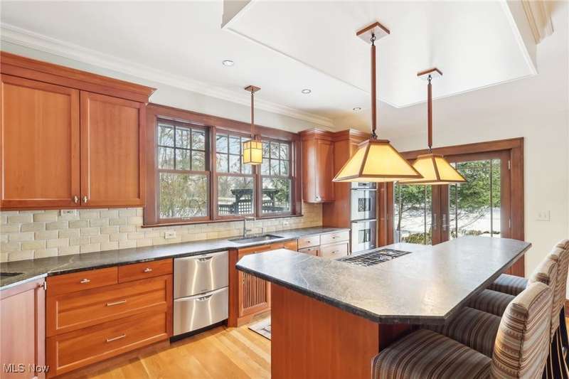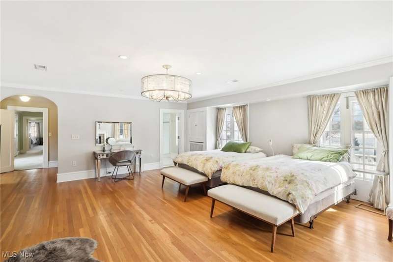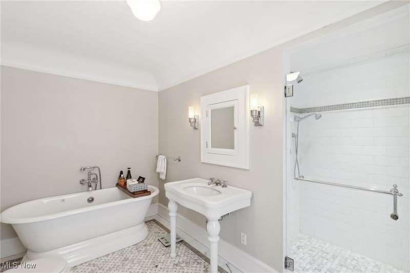 Tucked away at the end of a private brick-paved street, this classic Cleveland Heights colonial is an architectural treasure, offering over 6,000 square feet of extraordinary living space on nearly three acres of tranquility. Perfectly combining timeless charm with modern functionality, this home is ideal for both indoor and outdoor entertaining. Step into the stunning Moravian tile foyer, where leaded glass windows, plaster moldings, and fireplaces set a tone of elegance and warmth. The first floor features an impressive library, a spacious eat-in kitchen with soapstone countertops and a center island, a light-filled great room, and a huge foyer. Two half bathrooms and an enclosed porch add convenience and versatility to this level. Upstairs, the master suite is a luxurious retreat, complete with a dressing room, private deck, and a gorgeous bathroom with heated floors. Five additional bedrooms, two additional full bathrooms, a half bathroom, and a second-floor laundry room offer plenty of space for family and guests. The finished basement includes a bonus room and an additional full bathroom, perfect for a home gym, playroom, or office. Outside, your private oasis awaits. Relax on the enclosed porch or entertain on the newly installed stone patio overlooking the expansive, beautifully landscaped grounds. Additional outdoor amenities include a basketball court and a full playground. With its impeccable updates, timeless charm, and one of the largest lots in Cleveland Heights, this home is a rare gem. Don't miss your chance to make it your own?schedule your showing today!