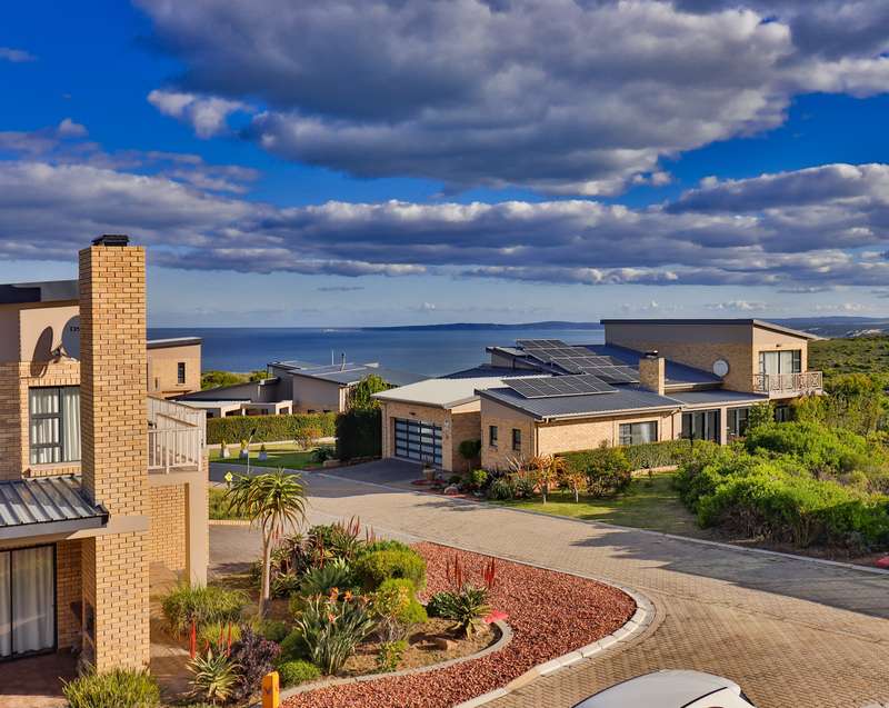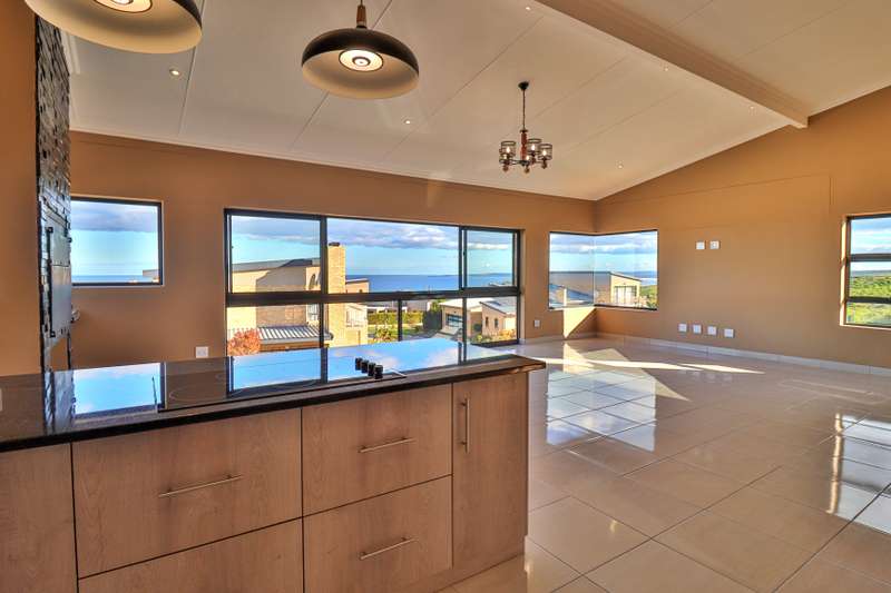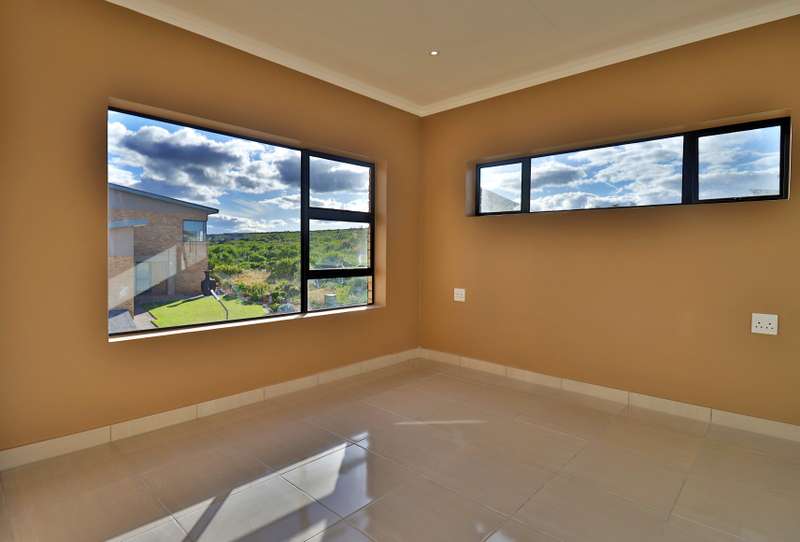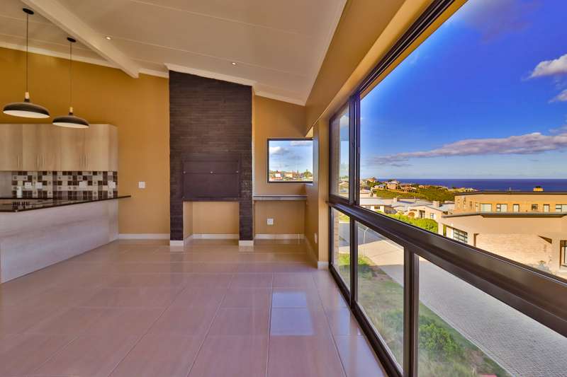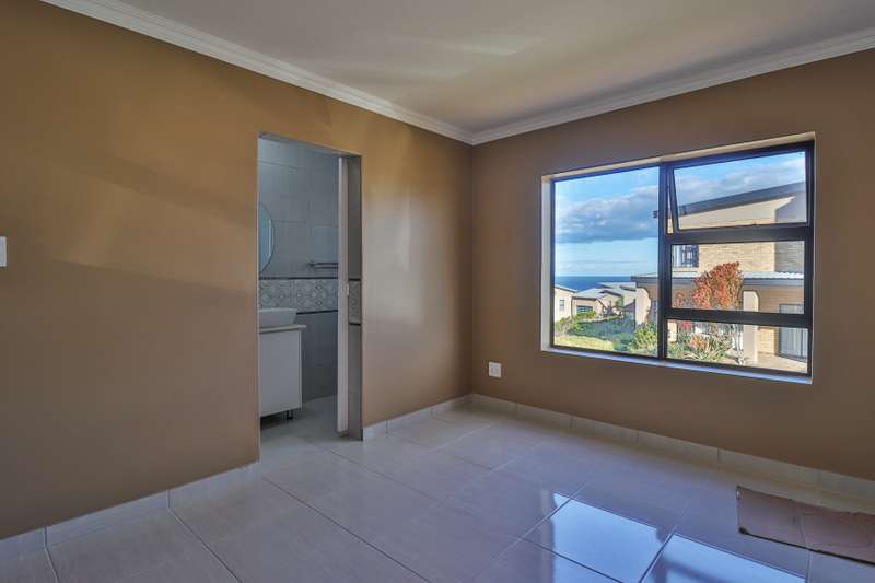This modern double-storey, beautiful home offers you 3 well-sized bedrooms, all with en-suite bathrooms. Once you enter the home, you will find two bedrooms on the ground floor, along with the entrance room and the laundry. Upstairs, you will be greeted with a huge open-plan living, dining, and braai area, with breathtaking views of the ocean. The very modern kitchen has lots of built-in cupboards, a breakfast bar, and a separate scullery with enough space for all the necessary appliances. The braai room, with large windows, offers you views of the ocean and is well-planned to entertain all the family and friends, all close to the necessary amenities and the modern kitchen. There is also a guest bathroom on the upper level. An automated, tiled double garage offers you ample storage space. This estate offers peace of mind with its security features, including CCTV cameras, all enclosed. This is a real beauty, so make that call and start living your dream life in the Garden Route.