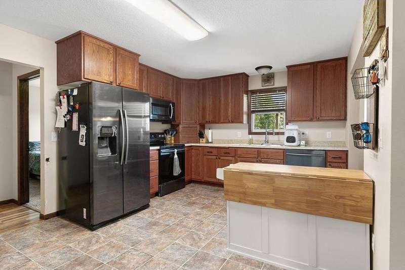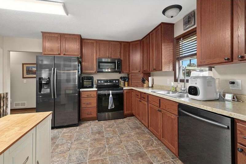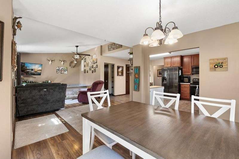 Multiple Offers have been received. Seller has called for highest & best offers by Thursday, 8-28-25 at 1:00 pm. Don't miss this opportunity to own a fully updated home! This home features a beautiful kitchen with custom cabinets, pantry & newer black stainless steel appliances stay. Vaulted ceilings in the living room & open floor plan to the dining. Main floor laundry, bedroom & bath complete the main floor. Head upstairs to 2 spacious bedrooms, family room & a flex space. Poured concrete basement offers loads of storage. Deck added in 2019. Single car garage & Carport. The fenced in yard is great for hanging out, swing set & sandbox stay! Schedule a showing today!