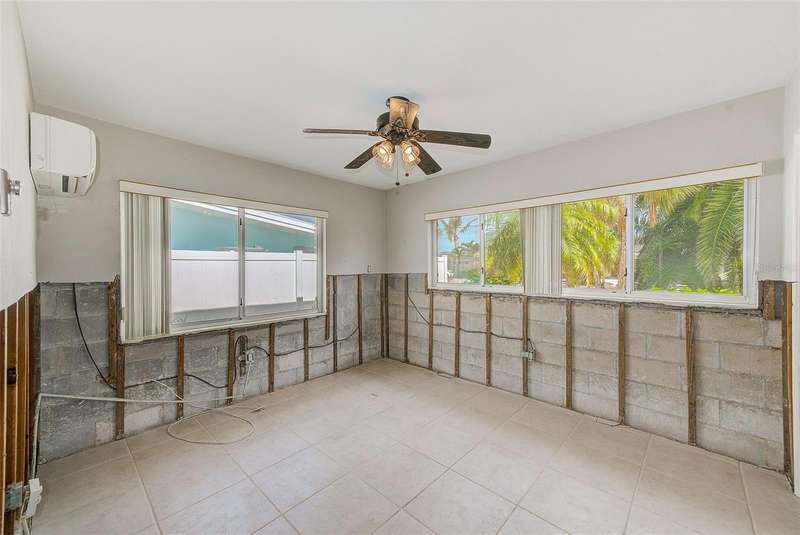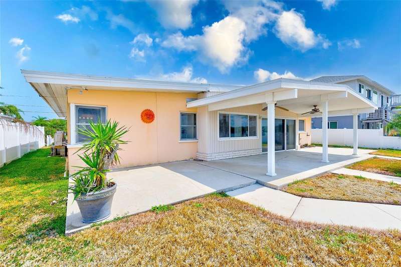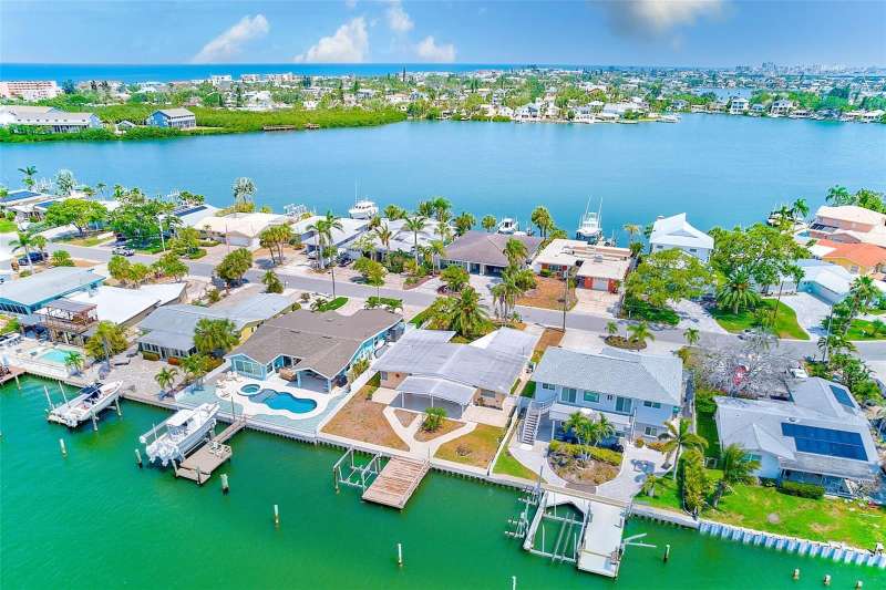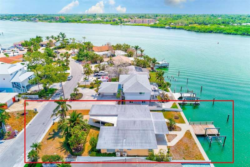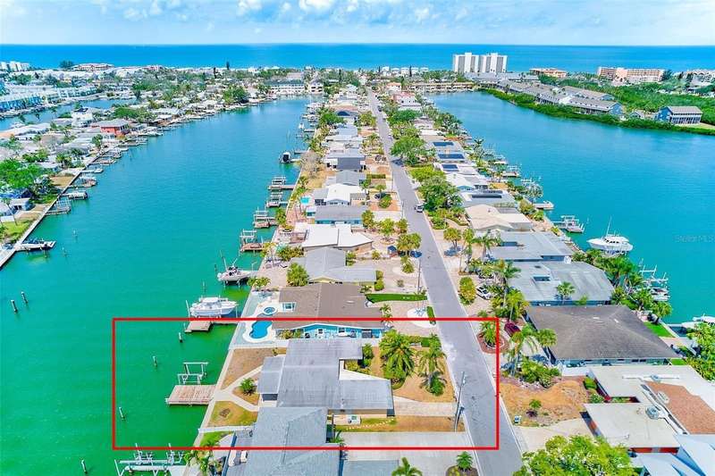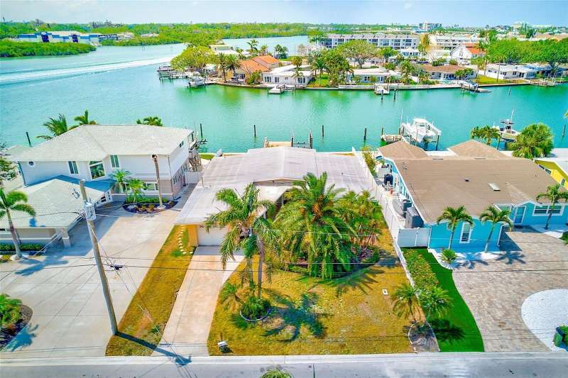 Under contract-accepting backup offers. Rare Waterfront Opportunity in Indian Rocks Beach! A beautiful, large lot with southern exposure on a wide, deep canal, right at the turn from the intracoastal waterway, provides stunning views, light and easy boating access from this beautiful location. Just a few minutes walk to the most beautiful sands and waters of Indian Rocks Beach. The front and back yards are professionally landscaped and maintained with a reclaimed water sprinkler system. The existing home, 2 bedrooms/2 baths, built with solid block construction, sustained some damages during 2024 hurricane Helene, but has been professionally remediated—offering a rare chance to renovate or build your dream waterfront home from the ground up. The home has its original Terrazzo floors under the ceramic tiles. Newer Roof and Ac's units ( 3 split units). Large kitchen, Living room/office/den combo space. Inside laundry room. Another area for dining room and a family room. Large covered back porch is the perfect spot for watching the boats go by, dolphins play, manatees and more. Seawall was recently rebuilt. Deeded Dock and lift need some updates. This generous lot is ideally situated in most sought after beautiful residential street in Indian Rocks Beach. It is also an great investment opportunity as short term rentals are allowed. This a dream location for a full time residence on the most beautiful beach, a part time beach retreat or a great investment opportunity. Indian rocks Beach is known for its welcoming atmosphere, beautiful beach and waters, great restaurants and parks. Don’t miss this exceptional piece of paradise in one of Florida’s most desirable beach communities! Sold As Is. Caution walking round the poperty as floors has some broken ceramaic tiles/damage.