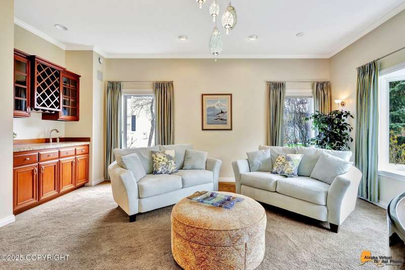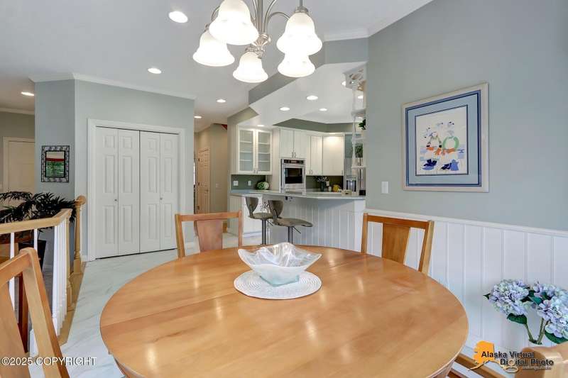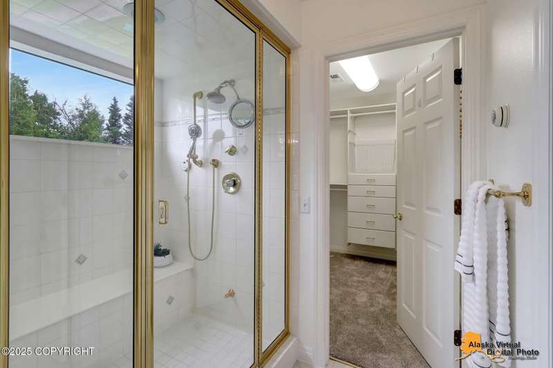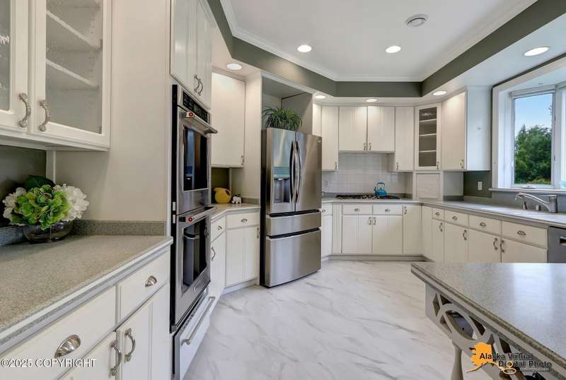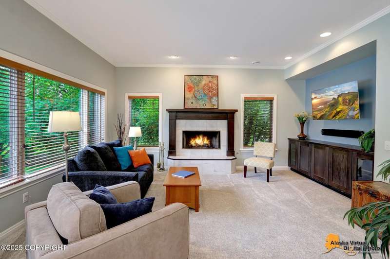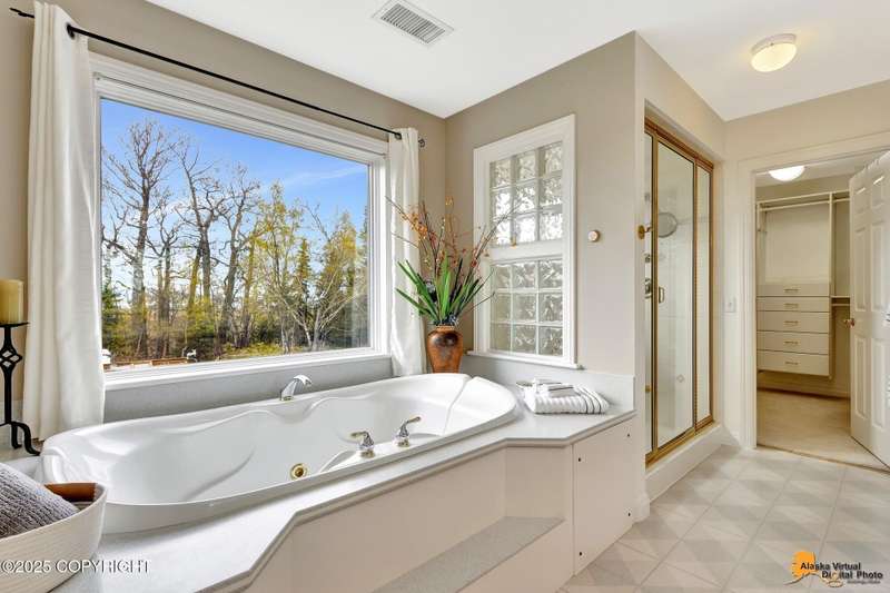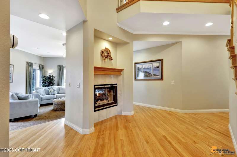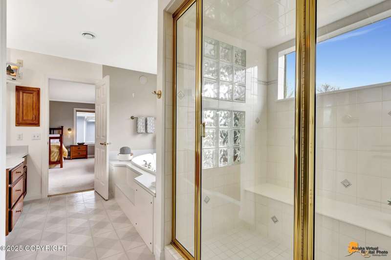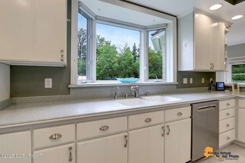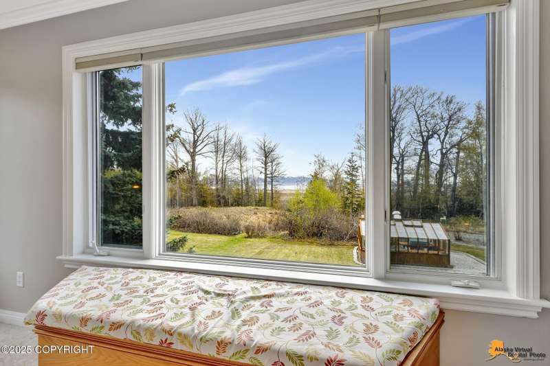 Rare location being back to Johns Park which is located on a bluff, Priced below tax assessed value, Enjoy seasonal inlet views thru the trees. Beautifully landscaped yard . All 4 BRs upstairs, all with private or semi-private BA access. Primary suite with exceptional views, 2 WIC's, jetted tub, and steam shower. Total of 4 WICs. Formal and informal living areas, Kitchen has new Stainless Steel double ovens, warming tray, DW and cooktop w/ down draft vent fan. Garden window over the sink with seasonal inlet views thru the trees. Entry opens to double- sided gas fireplace. Family room has a woodburning FP. New carpeting installed on the top two floors plus new LVP flooring in the kitchen and breakfast nook area & Jack n Jill bath (July 2025). Refinished hardwood floors in the entry, 1/2 bath & main hallway. The fully finished basement has full kitchen/bar (microwave, fridge, built-in DW), large rec area with pool/ping pong, darts, and surround sound. Bonus Room ideal for hobby or gym use with nearby 3/4 Bath. Ample storage. In-floor heat throughout home and garage. plus the driveway and the walkways. Oversized extra deep 2 1/2 car garage including large utility sink, disposal, freezer, refrigerator and custom cabinets. In ground sprinkler system plus greenhouse. primary suite has two WIC, a private bath with steam shower, and separate jetted tub. Minutes to midtown or shopping areas. Trail access less than a block away and inlet mudflats nearby. Adjoining Vacant Lot 11 is available to purchase First right to the buyer of Lot 10 for $450,000,