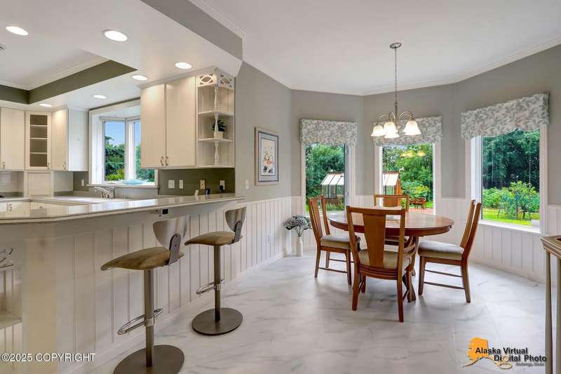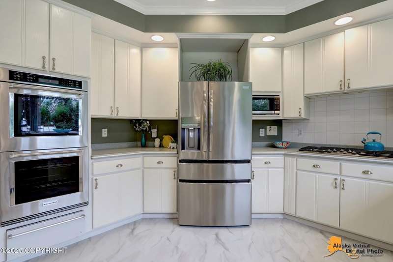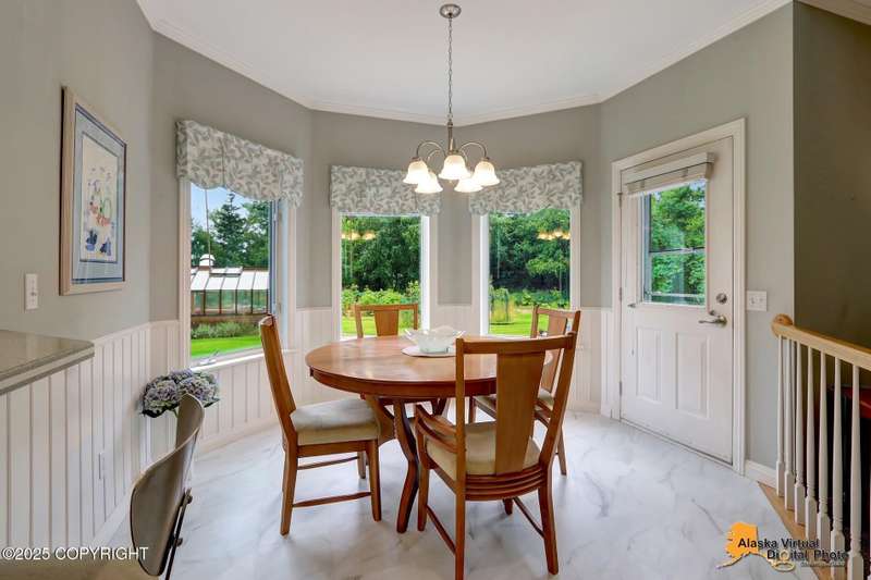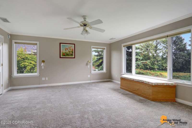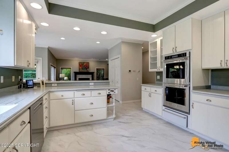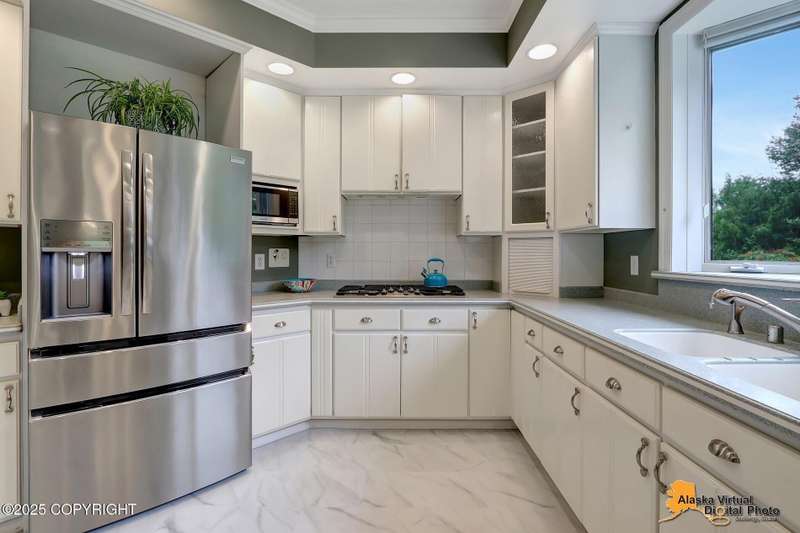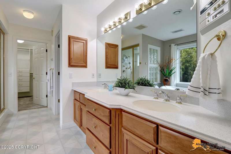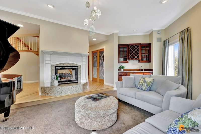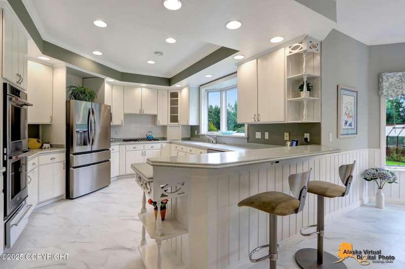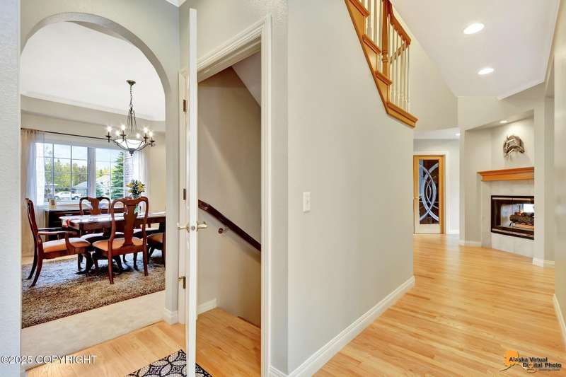 Rare location being back to Johns Park which is located on a bluff, Priced below tax assessed value, Enjoy seasonal inlet views thru the trees. Beautifully landscaped yard . All 4 BRs upstairs, all with private or semi-private BA access. Primary suite with exceptional views, 2 WIC's, jetted tub, and steam shower. Total of 4 WICs. Formal and informal living areas, Kitchen has new Stainless Steel double ovens, warming tray, DW and cooktop w/ down draft vent fan. Garden window over the sink with seasonal inlet views thru the trees. Entry opens to double- sided gas fireplace. Family room has a woodburning FP. New carpeting installed on the top two floors plus new LVP flooring in the kitchen and breakfast nook area & Jack n Jill bath (July 2025). Refinished hardwood floors in the entry, 1/2 bath & main hallway. The fully finished basement has full kitchen/bar (microwave, fridge, built-in DW), large rec area with pool/ping pong, darts, and surround sound. Bonus Room ideal for hobby or gym use with nearby 3/4 Bath. Ample storage. In-floor heat throughout home and garage. plus the driveway and the walkways. Oversized extra deep 2 1/2 car garage including large utility sink, disposal, freezer, refrigerator and custom cabinets. In ground sprinkler system plus greenhouse. primary suite has two WIC, a private bath with steam shower, and separate jetted tub. Minutes to midtown or shopping areas. Trail access less than a block away and inlet mudflats nearby. Adjoining Vacant Lot 11 is available to purchase First right to the buyer of Lot 10 for $450,000,