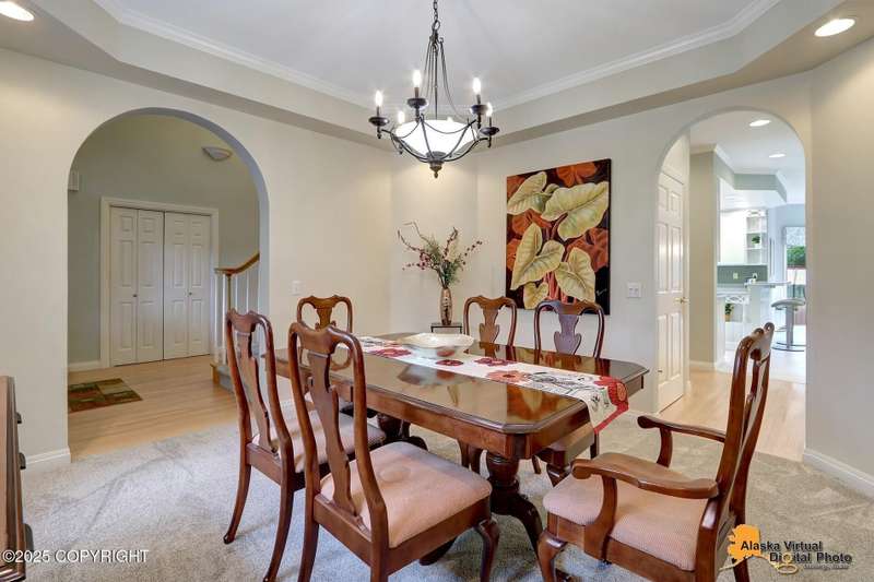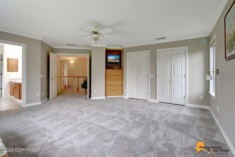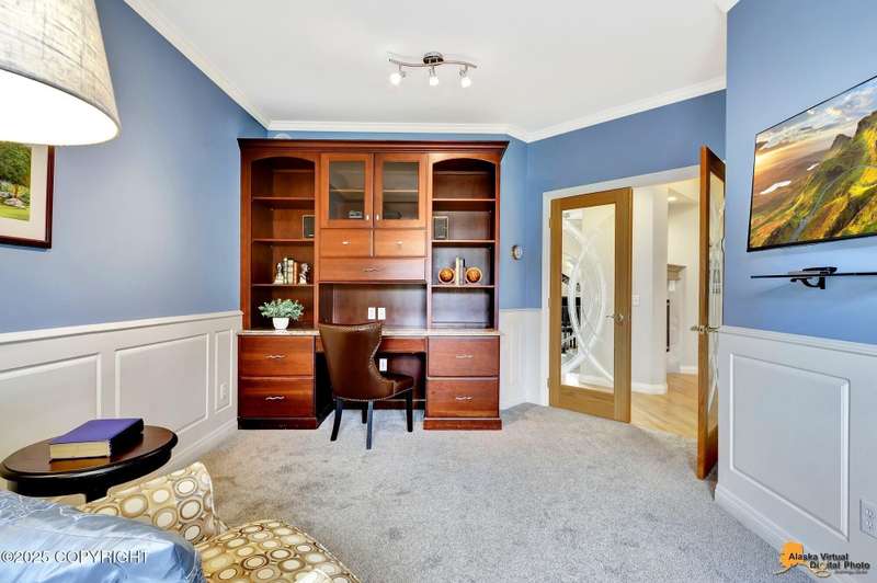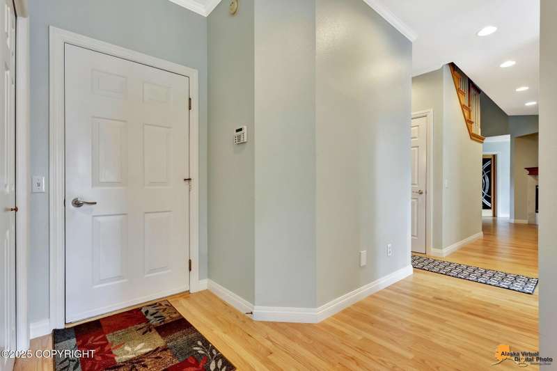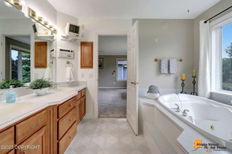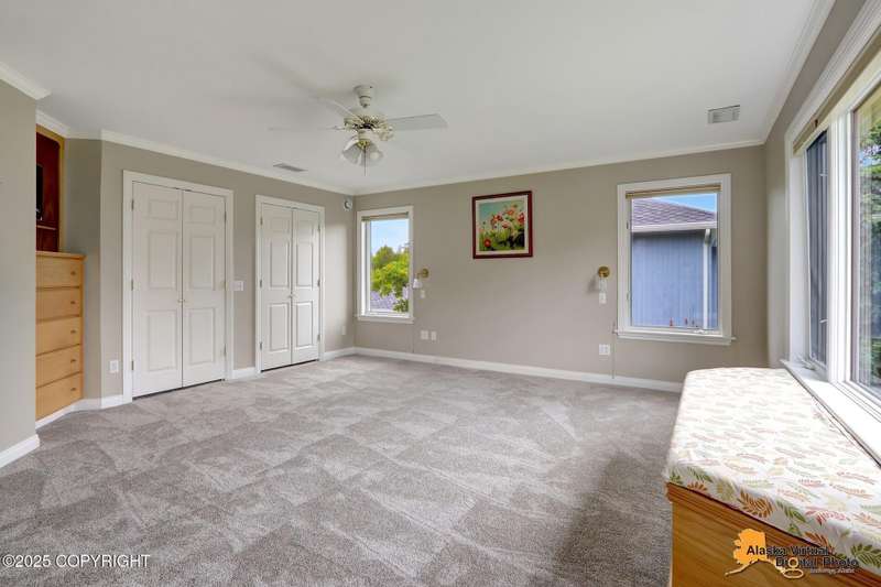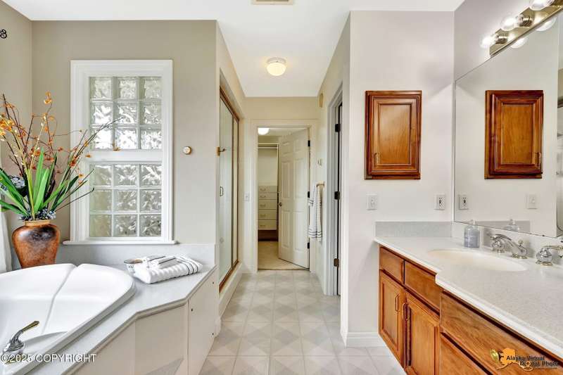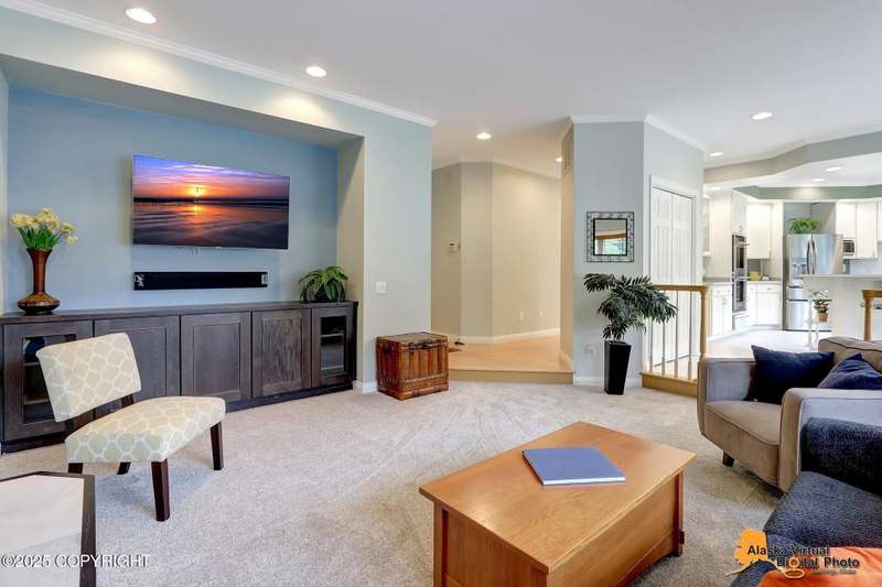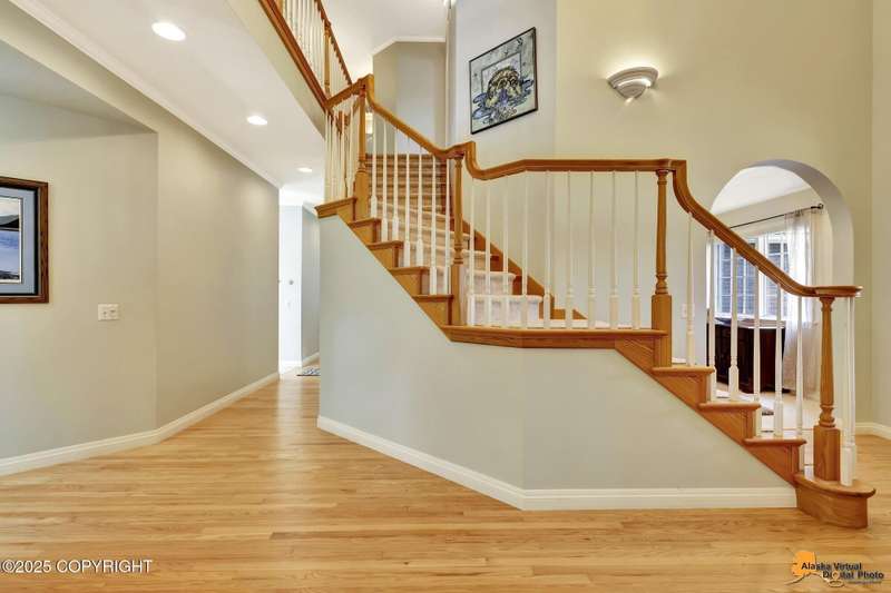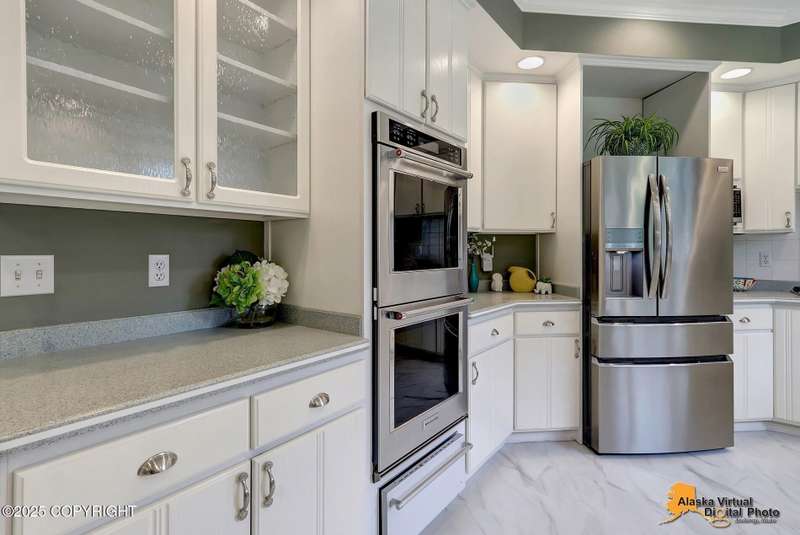 Rare location being back to Johns Park which is located on a bluff, Priced below tax assessed value, Enjoy seasonal inlet views thru the trees. Beautifully landscaped yard . All 4 BRs upstairs, all with private or semi-private BA access. Primary suite with exceptional views, 2 WIC's, jetted tub, and steam shower. Total of 4 WICs. Formal and informal living areas, Kitchen has new Stainless Steel double ovens, warming tray, DW and cooktop w/ down draft vent fan. Garden window over the sink with seasonal inlet views thru the trees. Entry opens to double- sided gas fireplace. Family room has a woodburning FP. New carpeting installed on the top two floors plus new LVP flooring in the kitchen and breakfast nook area & Jack n Jill bath (July 2025). Refinished hardwood floors in the entry, 1/2 bath & main hallway. The fully finished basement has full kitchen/bar (microwave, fridge, built-in DW), large rec area with pool/ping pong, darts, and surround sound. Bonus Room ideal for hobby or gym use with nearby 3/4 Bath. Ample storage. In-floor heat throughout home and garage. plus the driveway and the walkways. Oversized extra deep 2 1/2 car garage including large utility sink, disposal, freezer, refrigerator and custom cabinets. In ground sprinkler system plus greenhouse. primary suite has two WIC, a private bath with steam shower, and separate jetted tub. Minutes to midtown or shopping areas. Trail access less than a block away and inlet mudflats nearby. Adjoining Vacant Lot 11 is available to purchase First right to the buyer of Lot 10 for $450,000,