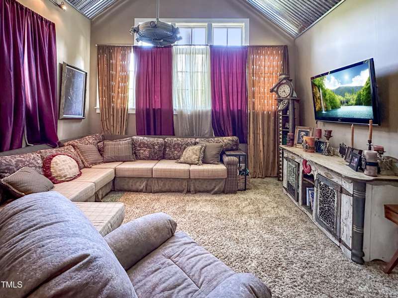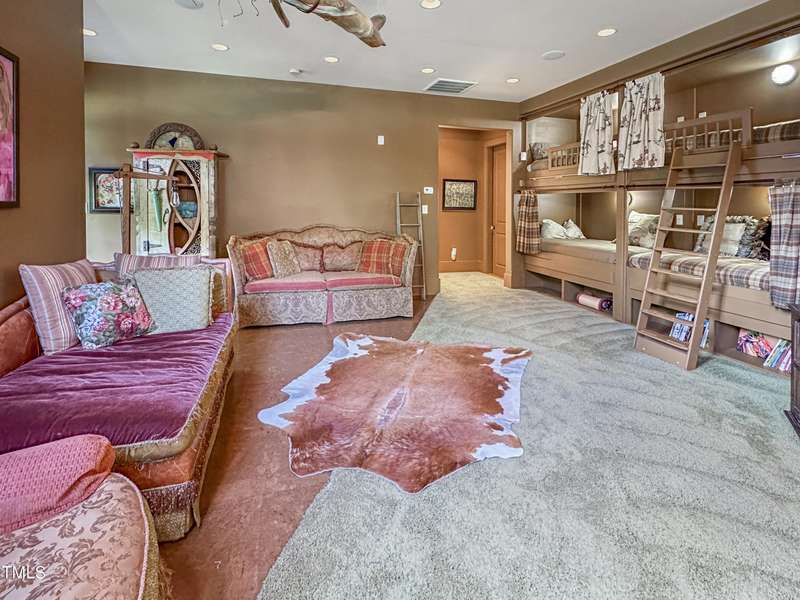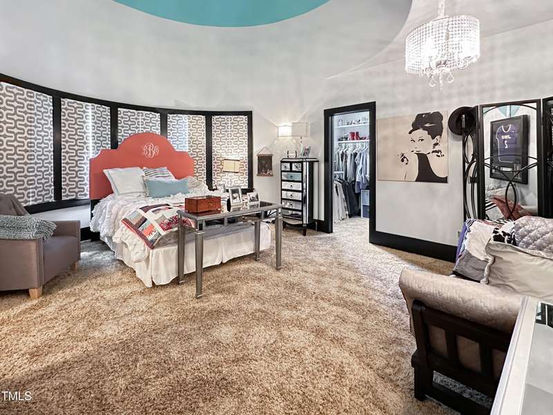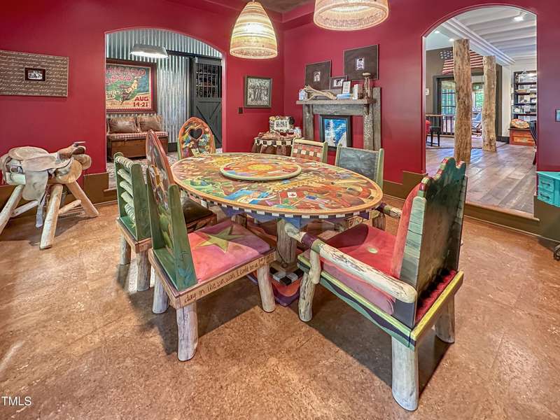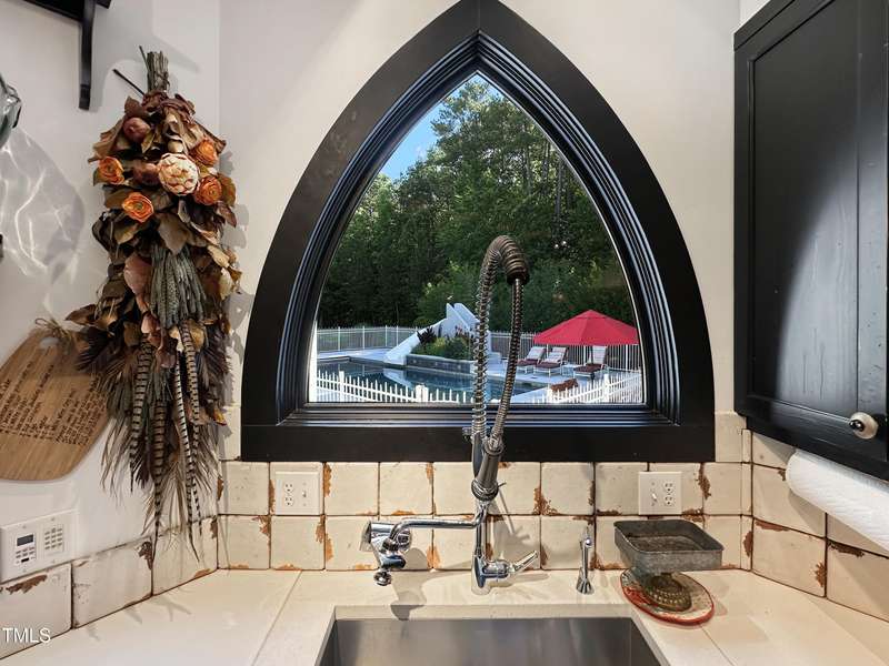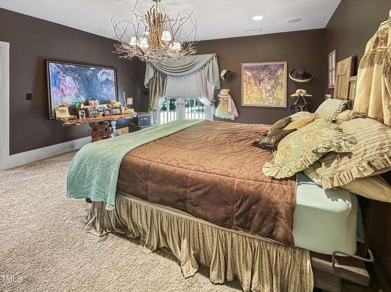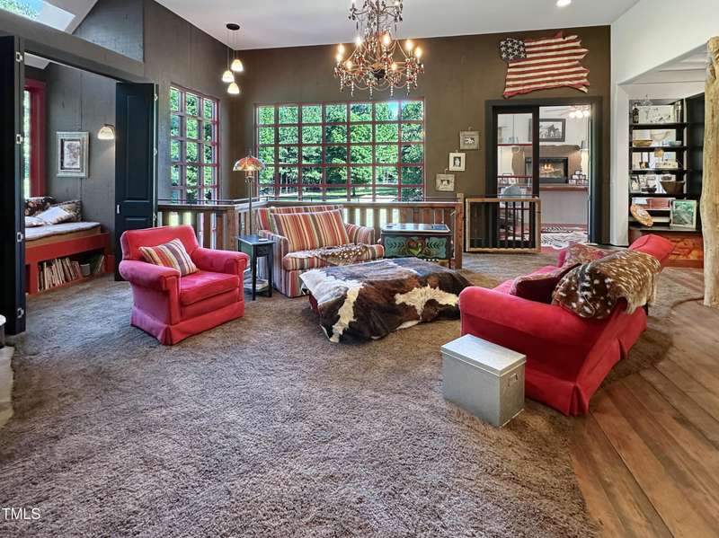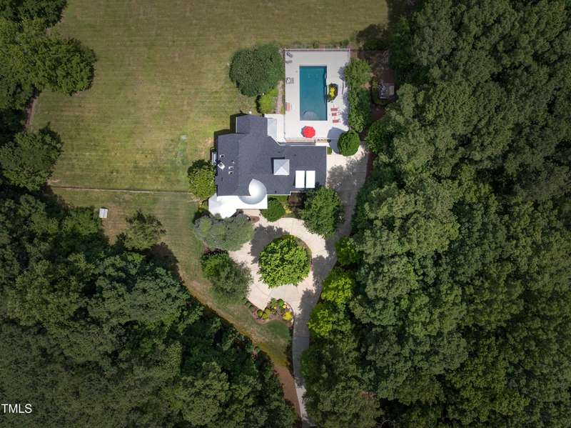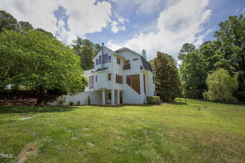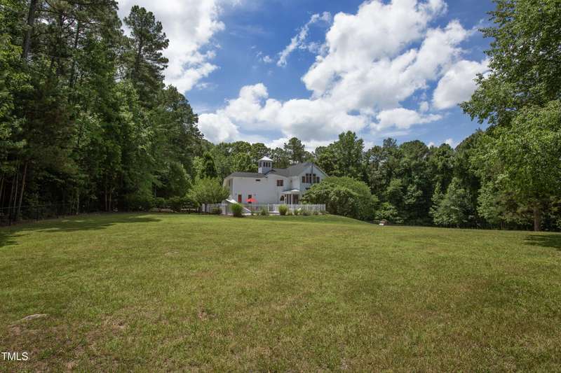 An Artist's Dream Home. This 5 Bedroom and 4.5 Bath Custom Home is full of Character and Creative flair. Nothing boring here! This home was designed with a vibe for the imaginative person who loves Free Flowing Rooms with whimsical touches. A uniquely different home surrounded by stunning landscapes. It's filled with natural wood carvings, art, and creative wrought iron accents. The home sits on 5.5 acres with stunning views of trees, open spaces, a swimming pool, a huge yard, and backs onto Falls Lake. It features an open kitchen with a bar and a sitting room with a fireplace, a craft room, an office area, and a pantry/mudroom. The second floor has a master suite, oversized bedrooms, private baths, and plenty of room to expand. The lower level includes a family room, guest bedroom, and ample storage. Enjoy a quiet walk around the grounds or to the lake. Relax on the large covered front porch or by the pool. It also offers easy access to shopping, RTP, and I-540. 360 Tour: https://momento360.com/e/u/7b297a673eca44dbbb766185ff944d24?utm_campaign=embed&utm_source=other&heading=0&pitch=0&field-of-view=75&size=large&display-plan=true