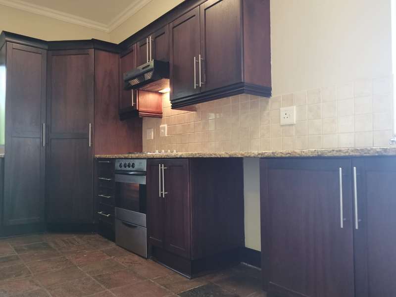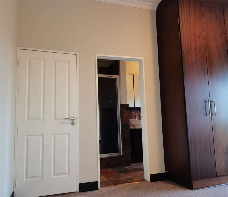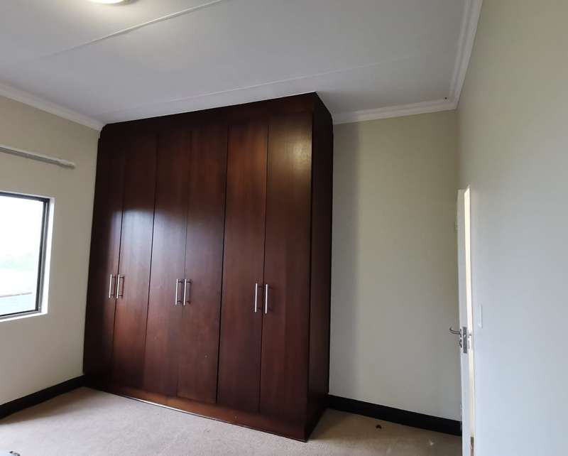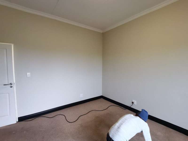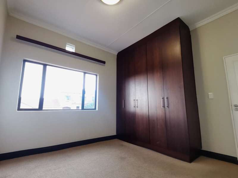 Spacious modern townhouse in a safe and secure estate. 3 Bedrooms, 2 bathrooms, extra guest toilet, double storey, lovely veranda with built-in braai. 2 Garages. Prepaid electricity and water Safe and secure in the Blueberry Complex