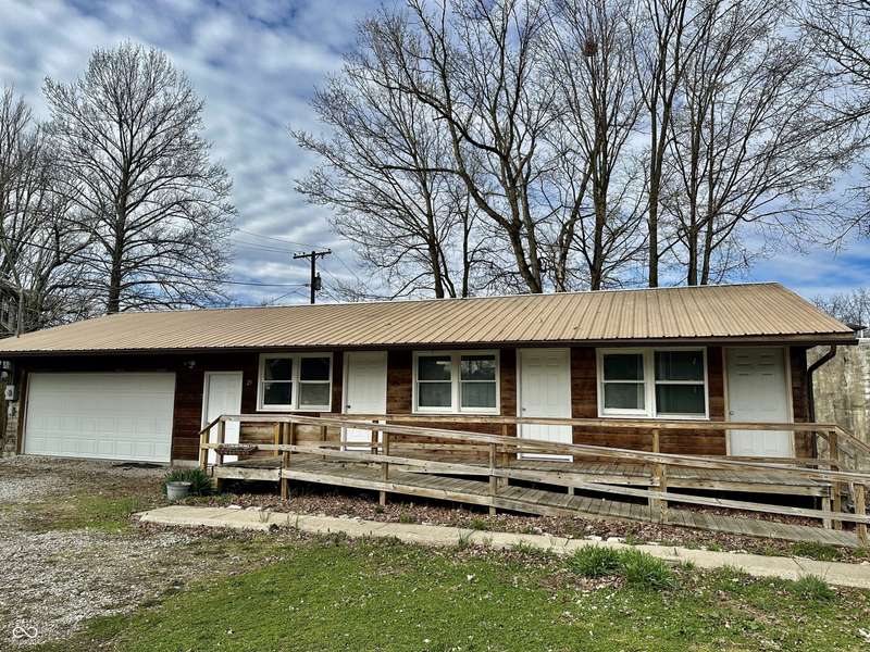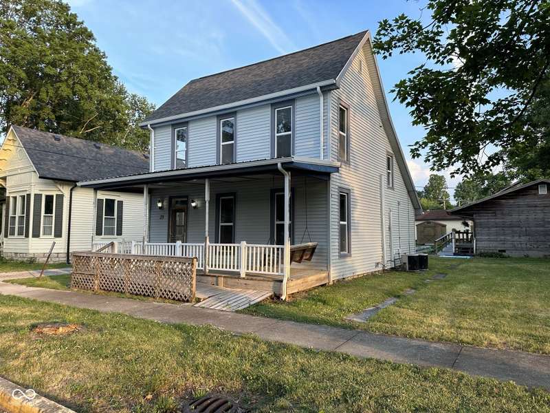 Welcome to this Historic Vernon Home with an Additional 2-Bedroom Accessory Dwelling Unit! Originally built in 1868 as Vernon's first courthouse, this two-story National-style home has been thoughtfully updated over the years while preserving its historic character. With a classic vinyl exterior, tall windows, and a symmetrical facade, this home blends timeless architecture with everyday functionality. Inside, you'll find generous living spaces, tall ceilings, and original detailing that reflect the home's storied past. Whether you're drawn to the rich local history or appreciate a one-of-a-kind home with personality, this property delivers. A detached secondary unit offers a washer and dryer hookup in the two-car garage, a kitchen, a living room, a full bath, and two bedrooms - perfect for guests, rental income, or a private home office. This versatile space adds tremendous value and flexibility. Located in the heart of Vernon, Indiana's first county seat - don't miss this rare opportunity to own a true piece of Jennings County history with added income or lifestyle potential.