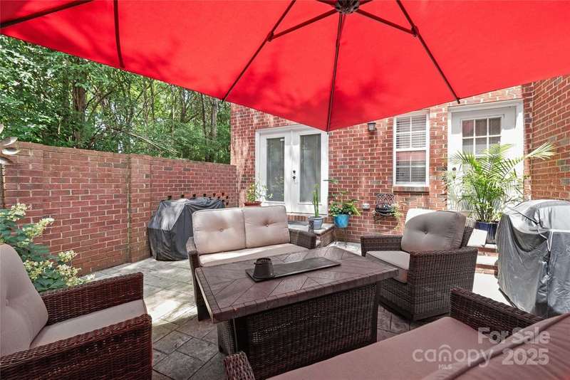 Seller offering $5k towards CC, rate buy down or a whole year of HOA dues with acceptable offer! Beautifully renovated, open-concept living featuring a dream kitchen w/ custom cabinets, expansive island, gas cooktop, quartz countertops, tons of storage & countertop space, perfect for entertaining. 9ft ceilings on 1st floor & new LVP flooring. This full brick, 68 townhome community w/ a pool is ideally located minutes from all conveniences! No worries over parking at Trader Joe's or the Greenway, just walk! Relax in your private, enclosed courtyard that backs up to trees, providing a peaceful oasis! It's the feel of a single-family home without the maintenance. Upstairs, you'll find an oversized owner's suite plus two more bedrooms & bath. The third floor offers endless possibilities & is currently used as a bonus room, but is a great flex space for your needs. Freshly painted throughout, brand new flooring on 3rd floor, HVAC replaced in 2023, new lighting, hardware & more!