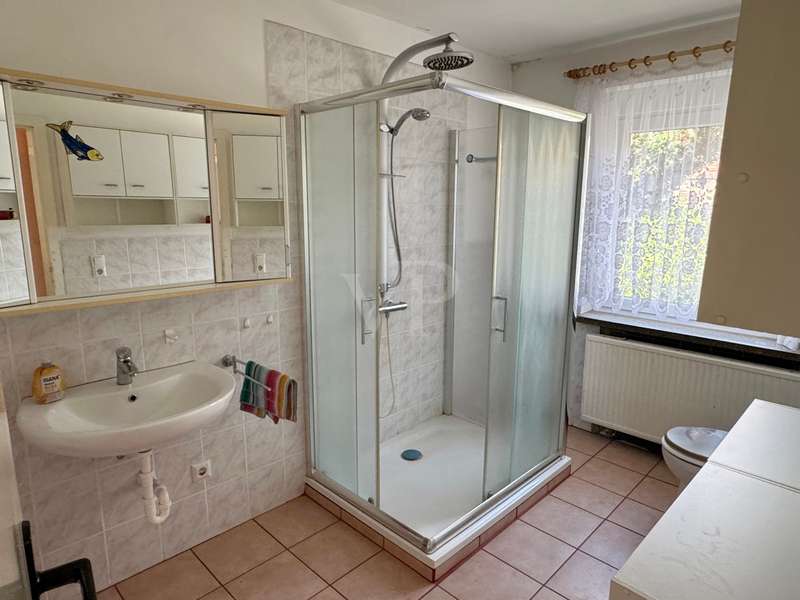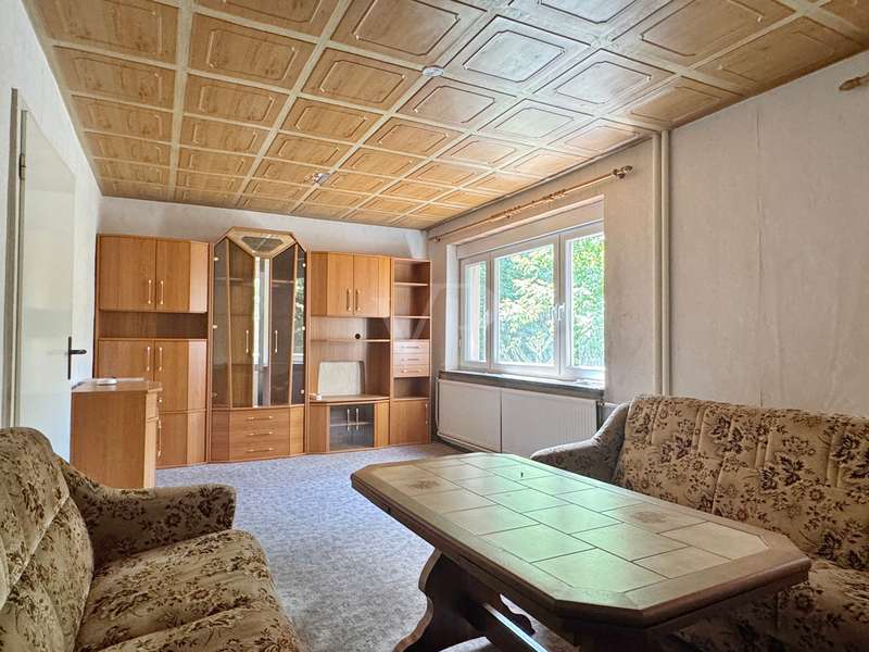 This terraced house is for sale in a quiet location in the Domsdorf estate. The house was built around 1976 and offers you a living space of around 100 m² on a plot of around 332 m². The property impresses with its well thought-out room layout and generous amount of space. You enter the house via a separate entrance and first reach the entrance area. On the first floor is the spacious living room, which is a pleasant meeting place for the whole family or guests. Directly in front of it is an open-plan dining area, which is ideal for both communal meals and socializing. The adjoining kitchen offers the space you need to prepare your meals and is functionally designed. Also located on the first floor is the bathroom, which was renovated in 2010 and is equipped with a shower, making it practical for everyday use. A solid staircase leads you to the upper floor, which houses a total of four further rooms. The rooms can be used as bedrooms, children's rooms or studies as required and offer you a wide range of possible uses - whether for a family, couples with space requirements or for setting up a spacious home office area. The room layout creates privacy and flexibility at the same time. Five separate rooms are available in the basement. In addition to the boiler room with a modernized gravity heating system (renewed in 2021) and existing media connections, there is sufficient storage space for everything that is not directly needed in everyday life. The renovation measures carried out include the replacement of the roof in 1989 as well as a new roof covering (2015), the installation of new windows (1996), the modernization of the bathroom (2010) and most recently the renewal of the gravity heating (2021). The furnishings are of a quality typical of the year of construction and thus offer you the opportunity to further design the house according to your own wishes. Next to the house, the property offers attractively landscaped meadows and open spaces that invite you to linger outdoors. There are two parking spaces for vehicles on the property. Due to the location and the layout of the rooms, the property could also be used as a vacation home as well as for personal use. Overall, the house presents itself in a tidy and continuously maintained condition. If you are looking for a home that offers you space for individual development and impresses with its generous amount of space, we recommend a personal viewing. We look forward to your inquiry!