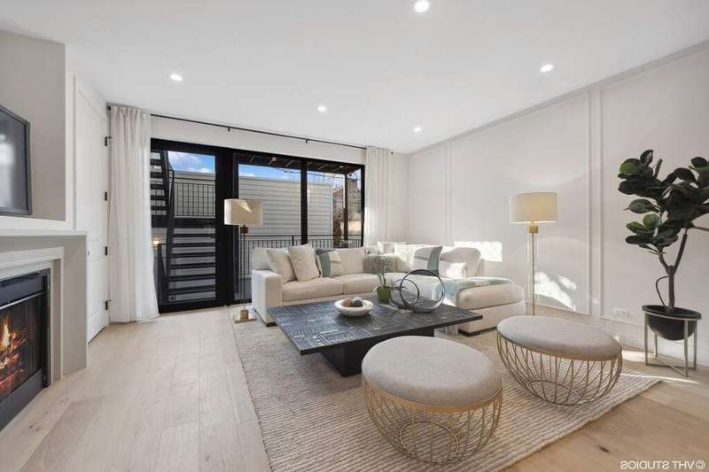 ONE MONTH FREE with a 20-month lease! This brand-new luxury duplex offers the perfect combination of style, comfort, and sophistication. The main level features a striking living room with a fireplace and dramatic floor-to-ceiling windows, a spacious dining area, and a warm family room with its own fireplace and access to a large private terrace, ideal for entertaining. A beautifully designed chef's kitchen and chic powder room complete the first floor. On the lower level, you'll find all three bedrooms, including a primary suite with a generous walk-in closet and a spa-like bath with an oversized shower and dual sinks. Two additional bedrooms, a full bath, a dedicated laundry room, and even a pet bathing station complete the lower level. Additional highlights include a private roof deck over the garage and detached garage parking available for $200/month. Up to two dogs are welcome for $75/month each (sorry, no cats). Tenants are responsible for electric, gas, and internet, with a one-time $1,000 non-refundable move-in fee in lieu of a security deposit. A furnished option is also available for added convenience. All leases must end or renew by April 30, 2027.
