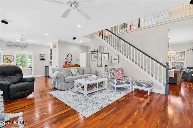 As you pull up to this Ocean Isle Beach home, the first thing that hits you is the locationit doesn't get better than this. Tucked among mature trees with clear views of the Intracoastal Waterway, this place has the kind of peace and privacy that's hard to find.Step onto the fully screened wraparound porch, and you'll immediately catch those coastal breezes and water views from just about every angle. It's the perfect spot to kick back with your morning coffee or unwind after a long day.Inside, rich cherry hardwood floors stretch through the main living areas, giving the home a warm, solid feel. The kitchen and baths are finished with ceramic tile, while the Carolina Room offers a relaxed space to hang out or entertain. On the main level, there's a guest suite with a private bath and dual access, ideal for family or friends.Upstairs, the primary suite makes a statementwith its own fireplace, a custom walk-in closet, and a spacious bath built for comfort. Step out onto the private screened porch, shared with the loft, and take in the quiet water viewsperfect for ending the day.This home has been cared for with attention to detail: gas furnace, tankless water heater, and two new A/C units installed in 2020. Outside, the landscaping is top-notch, with a private well-fed irrigation system, patio, walkways, and a gated pool area that's great for entertaining or just relaxing in your own space.It's the perfect mix of coastal character, quality construction, and modern updatesa home that feels solid, private, and built to enjoy the coastal lifestyle to the fullest.