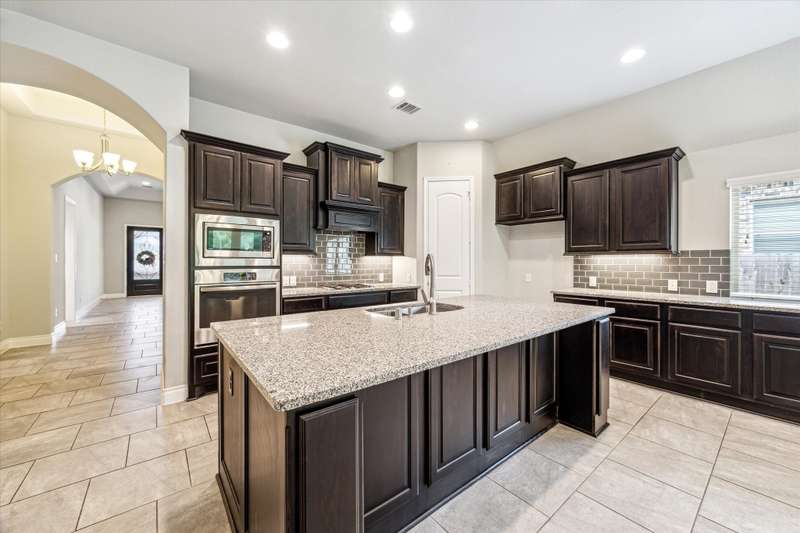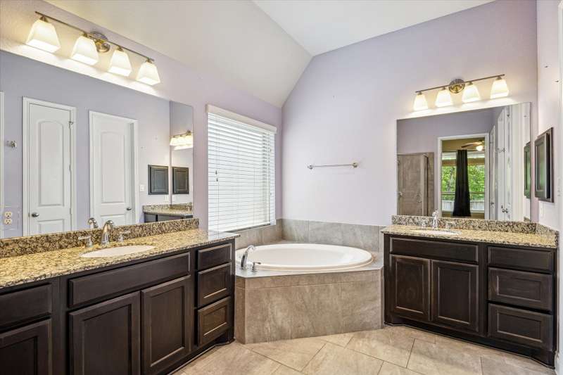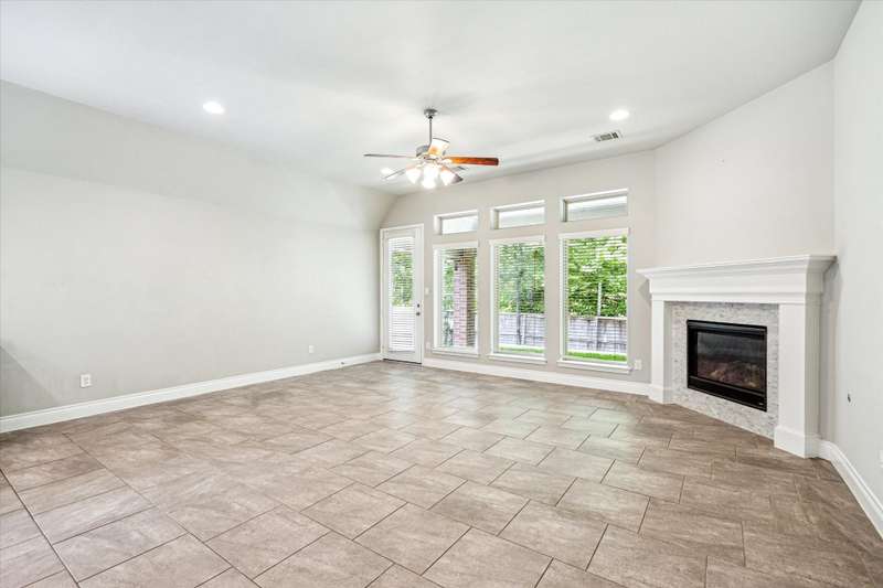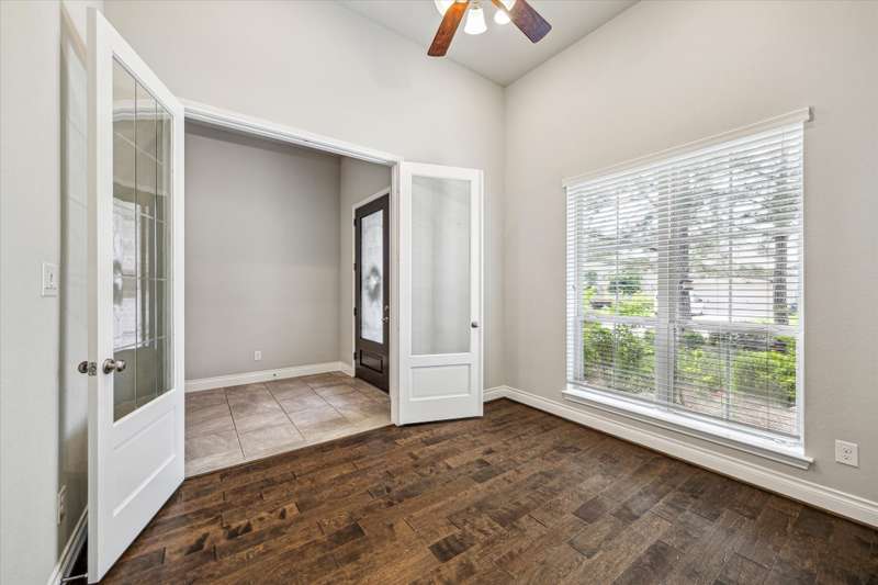 Fabulous one story Perry Home in the highly desirable Grand Central Park community. This 4 bedroom, 3 bath home offers four side brick exterior with stone accents and sits on a serene greenbelt lot in a private enclave. The enormous, island kitchen has granite countertops, extensive espresso cabinetry, decorative back splash, large pantry, SS GE appliances and seamlessly transitions into the spacious living room with cozy corner fireplace. High ceilings and gorgeous tile and wood look tile flooring throughout complement this open, efficient floor plan. Primary retreat includes a large bathroom with two vanities, two closets, walk in shower and soaking tub. Private, guest bedroom with ensuite bathroom and walk in closet, two additional bedrooms with shared bathroom and office/library with French doors round out this gem. Excellent location convenient to, The Woodlands, shopping, dining, entertainment, hospitals and Lake Conroe. All info per Seller.
