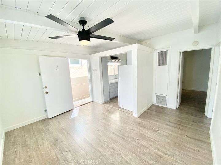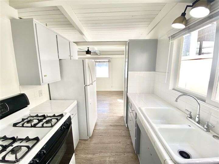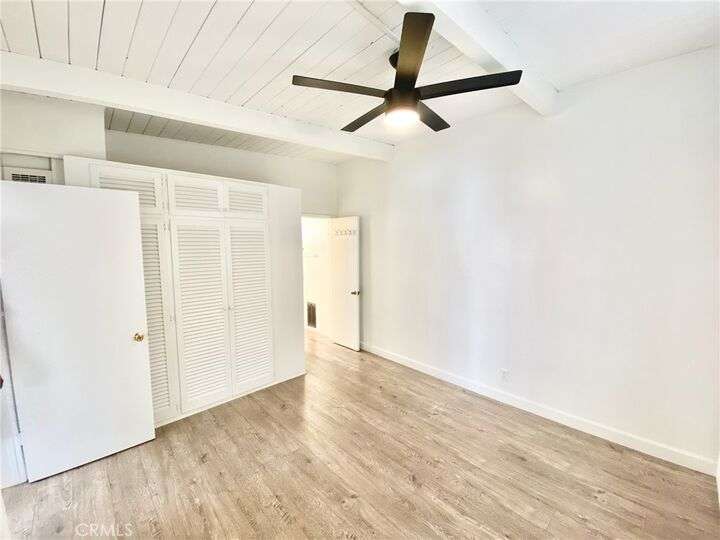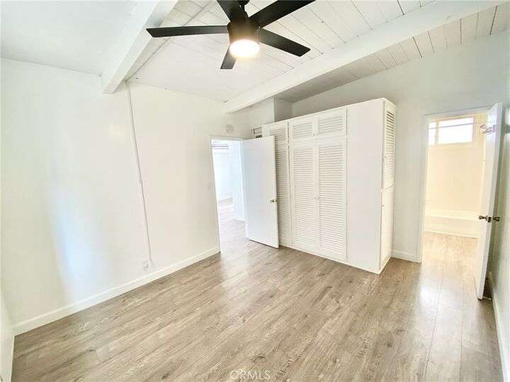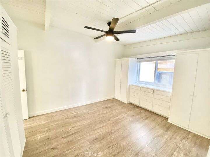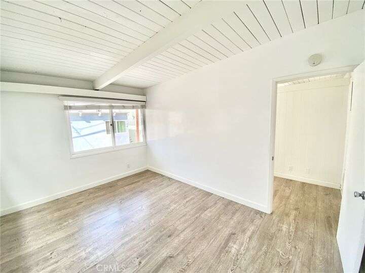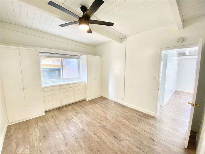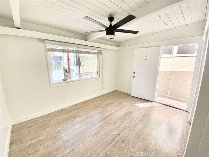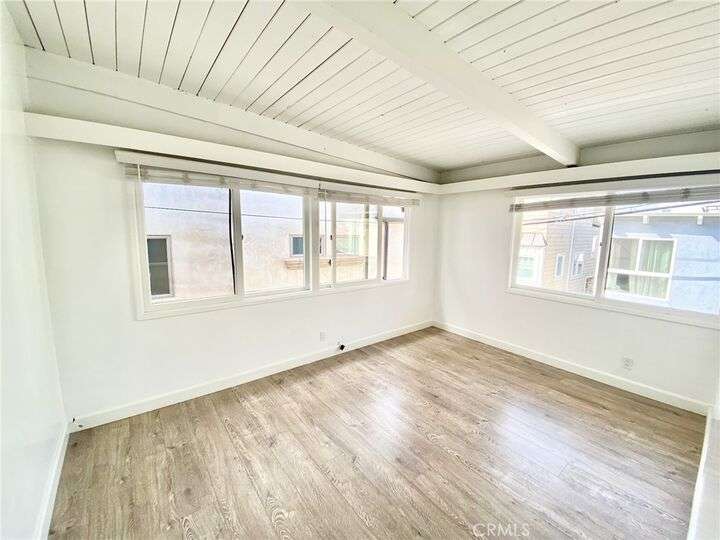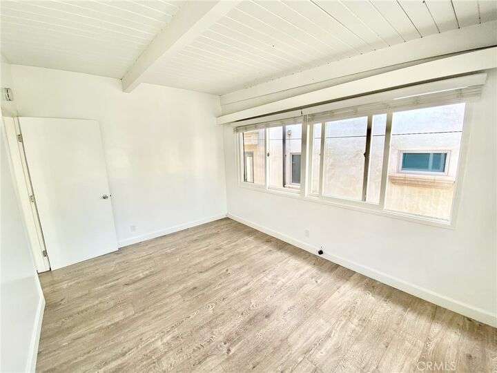 Bright Updated 2 Bedroom Apt, three homes to The Strand and STEPS TO THE BEACH! Corner unit in 4-unit building. The 1 bathroom is an en-suite inside one of the bedrooms. 2 car tandem garage parking included. Excellent surfing and beautiful white sand beach right outside your door. Experience the best of beach living in the heart of Manhattan Beach's north end. Restaurants, cafes, shopping, dining and more ALL within steps. Easy access to freeways, only 10 minutes from LAX. Coin operated laundry access. Please call; do not e-mail. No pets please.