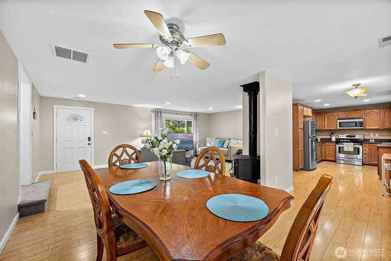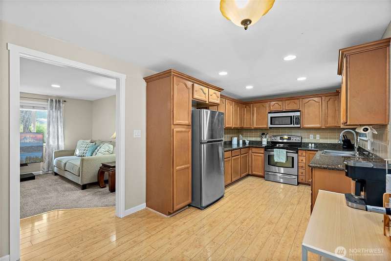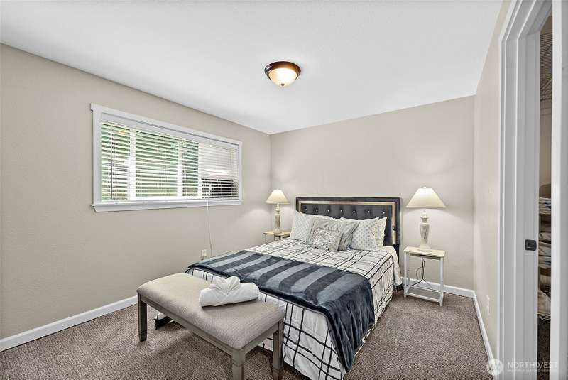 Stylishly updated 4-bed, 2-bath rambler on a spacious 0.39-acre lot, offering a peaceful retreat with every amenity. Enjoy brand new carpet and a full interior paint job just completed. The expansive backyard oasis features a tranquil Koi pond, firepit, professional landscaping, multi-tier Trex deck, wood deck, & a hot tub with sliding roof. Inside, the sunroom offers year-round comfort, & the kitchen features granite counters & stainless steel appliances. This home has also been a profitable Airbnb & is offered fully furnished—ready for your next chapter. Extras include RV parking, storage sheds, & a fully fenced yard. Private access to Lake Debra Jane, pool, sport courts, and park. Minutes to Lake Tapps & in the Sumner BL School District!