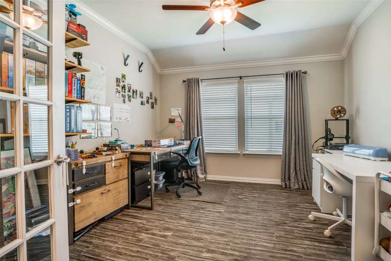 Welcome to this stunning 3-bedroom, 2-bath home, built in 2020 and nestled within a highly sought-after master-planned community of North Creek Estates. This exceptional property offers an ideal blend of modern living and incredible amenities. Step inside to discover a thoughtfully designed interior, including a private study enclosed by French doorsperfect for a home office, craft room, formal dining or quiet retreat. A convenient mudroom and a clever pocket office add to the homes functional appeal. The heart of this home is its spacious kitchen, featuring a large island, a sleek single-bowl stainless steel sink, and a desirable gas cooktop, making it a chef's dream. The primary suite offers a bay window which creates a sitting area for reading or watching TV. Enjoy the outdoors from your screened-in porch, offering a perfect spot for relaxation or entertaining. Residents of this vibrant community benefit from an array of amenities, including refreshing pools, scenic walking trails, a workout room, and fun-filled playgrounds. This home offers the perfect lifestyle in a prime location.