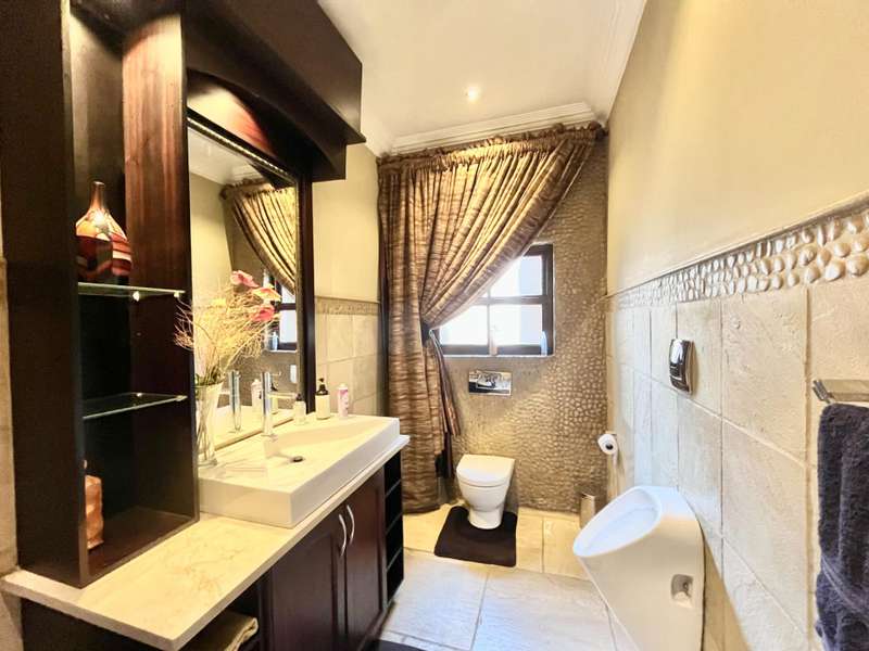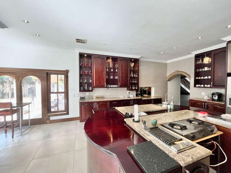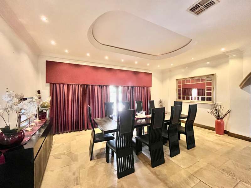 Welcome to a rare gem in the heart of Lakefield, perfectly positioned around the serene bird sanctuary. This expansive and luxurious 7 bedroom, 7.5 bathroom residence offers the ideal setting for a private family home or a guest house retreat. Set on a large corner stand within a secure boomed off enclave, this home is the ultimate entertainer?ÇÖs dream. Step into a spacious indoor bar area complete with its own private lounge and games room, seamlessly flowing out to an undercover outdoor entertainment patio. Enjoy gatherings around the sparkling pool, surrounded by a lush, manicured garden fed by a fully operational borehole. The gourmet kitchen is a chef?ÇÖs delight, featuring high end finishes, a large scullery, and a dedicated laundry area. The formal dining room opens directly to the entertainment area, creating a natural flow for hosting dinners and events. A private wine cellar adds an extra touch of sophistication, perfect for entertaining family and friends. This home offers excellent flexibility with two separate entrances and multiple living spaces. A dedicated home office/study provides a peaceful work from home environment, complete with built-in cupboards and its own en-suite bathroom, ideal for professionals needing privacy. Each of the seven bedrooms is generously sized, with ample built-in storage and en-suite bathrooms. The home is fully air-conditioned with a central heating and cooling system, ensuring year round comfort. For added convenience, the property includes two domestic quarters, perfect for staff accommodation or extended guests. With panoramic views of the tranquil bird sanctuary and top notch security, this home provides a unique lifestyle opportunity. Whether you're looking for a luxurious family haven or envision running a boutique guest house, this property offers endless potential in one of Lakefield?ÇÖs most desirable settings. Key Features: 7 spacious bedrooms, 7.5 bathrooms Indoor bar, lounge & games room Undercover entertainment patio and outside Pool Gourmet kitchen with scullery & laundry Wine cellar, large borehole fed garden Fully air conditioned, central heating/cooling 2 domestic quarters 2 separate entrances on a corner stand Located in a boomed off area with bird sanctuary views Don't miss out on this exclusive opportunity. Contact us today to schedule your private viewing.