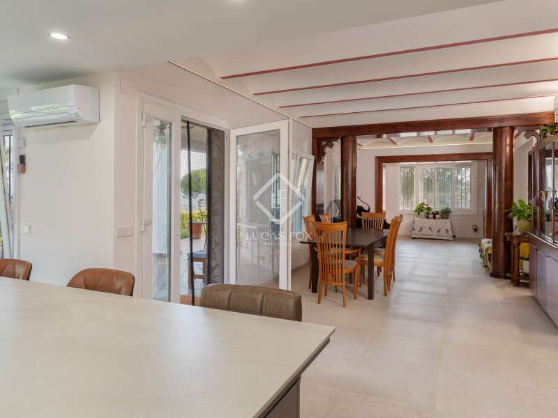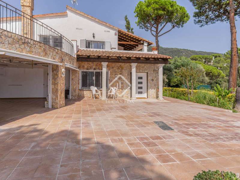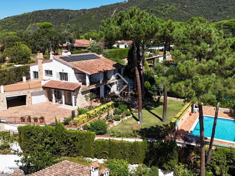 Lucas Fox presents this elegant and exclusive villa with a contemporary design in a sunny and privileged setting in Santa Cristina d'Aro, on the Costa Brava. The property offers wide open spaces and a wonderful private garden with a large pool, ideal for enjoying the tranquility and spectacular mountain views. On the ground floor, the villa has a spacious entrance lobby , a large living-dining room that connects to the modern kitchen, both with direct access to the garden, as well as a living room with a fireplace, a double bedroom and a full guest bathroom . The upper floor houses four bedrooms, three of which have en-private bathroom and access to a large sunny terrace with stunning panoramic views, as well as an additional bathroom . The main bedroom features a fireplace and a spectacular bathroom with a private Jacuzzi. Exterior, the spacious garden offers countless spaces for leisure and relaxation, complemented by a large private pool, a double garage with electric vehicle charging stations, an automatic gate, and a stone wall on the street for added privacy. The villa also has three storage rooms, including one under the pool. The property has been completely renovated with high-quality materials. It features a new electrical system, high-efficiency double-glazed windows and doors throughout, and is equipped with solar panels that cover most of the electricity consumption, resulting in lower bills. It also features a heating and air conditioning system with a heat pump. Thanks to its location, you can enjoy maximum tranquility without sacrificing proximity: just 15 minutes from the beach, 25 minutes from Girona, and one hour from Barcelona. In addition, there is a neighborhood club that offers excellent facilities, including a large communal pool, a children's play area, and tennis courts, which is an attractive addition to the property's leisure options. This villa is the perfect home for those seeking luxury, privacy, sustainability, and a comfortable lifestyle on the Costa Brava.