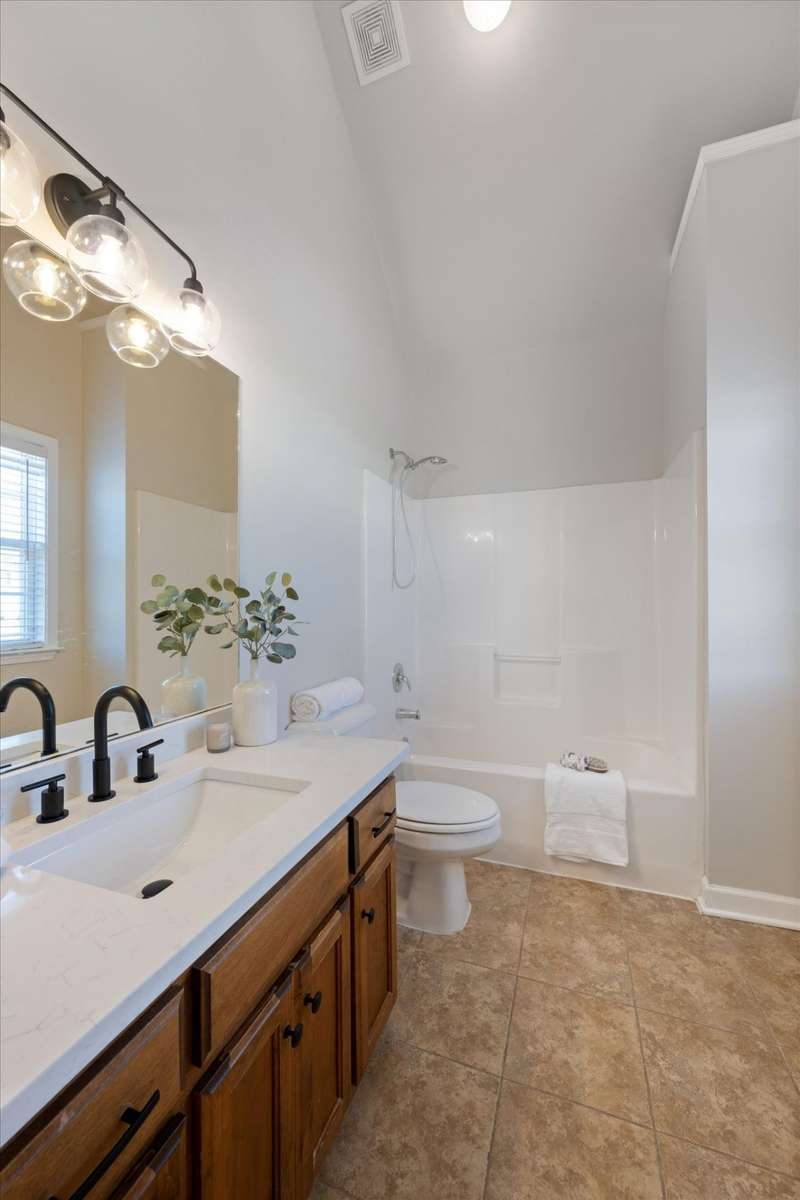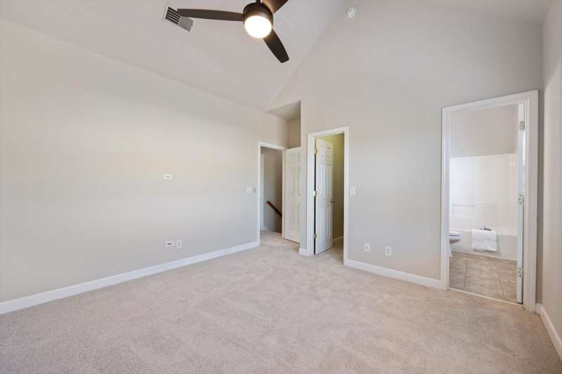 Beautifully updated townhome offering the perfect balance of comfort and style. Each bedroom features its own private bath, providing privacy and flexibility. The kitchen and bathrooms shine with brand-new quartz countertops and faucets, paired with updated designer lighting/ceiling fans throughout. Georgeous refinished hardwood floors flow across the main level, while new carpet upstairs adds warmth. With all-new interior paint, this home is completely move-in ready. Step outside to your private deck for quiet mornings or evening gatherings. Community pool, clubhouse and playground are steps away! Conveniently located near shopping, dining, and schools-this townhome checks all the boxes!
