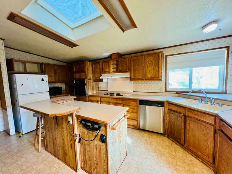 Peaceful country living with beautiful mountain views! This rare 9.19-acre EFU-zoned property offers the perfect blend of privacy, space, and versatility. Fully fenced and set in a serene rural setting, this property is ideal for those seeking a peaceful lifestyle with room to grow. The 1987 manufactured home features 1,731 sq ft of living space with 2 bedrooms plus office, 2 bathrooms, formal dining room, spacious laundry room, and a large kitchen perfect for entertaining. Outside, you'll find a variety of functional outbuildings including a pole barn, a 3-bay garage w/attached workshop—ideal for hobbies, storage, or livestock. Don't miss this opportunity to create your dream homestead! Short Sale - subject to lien holder/bank approval.