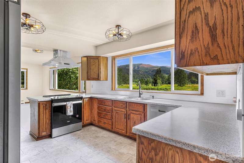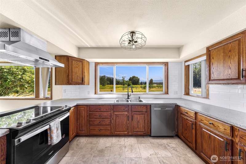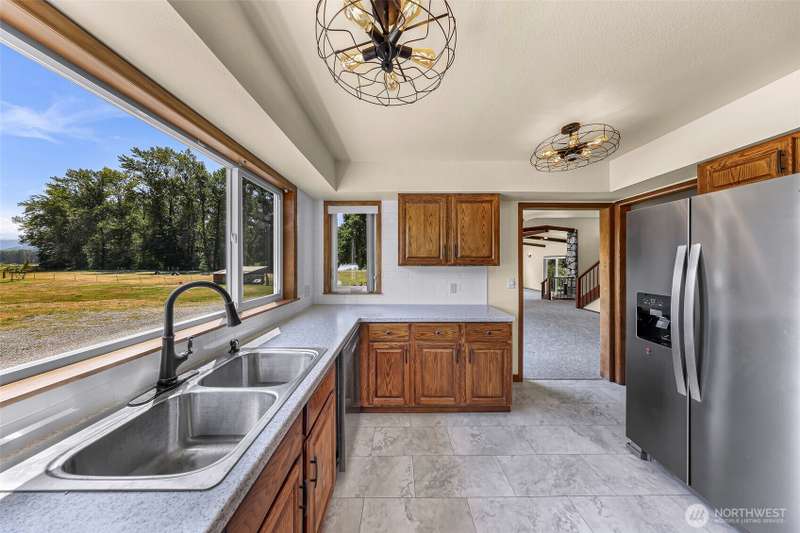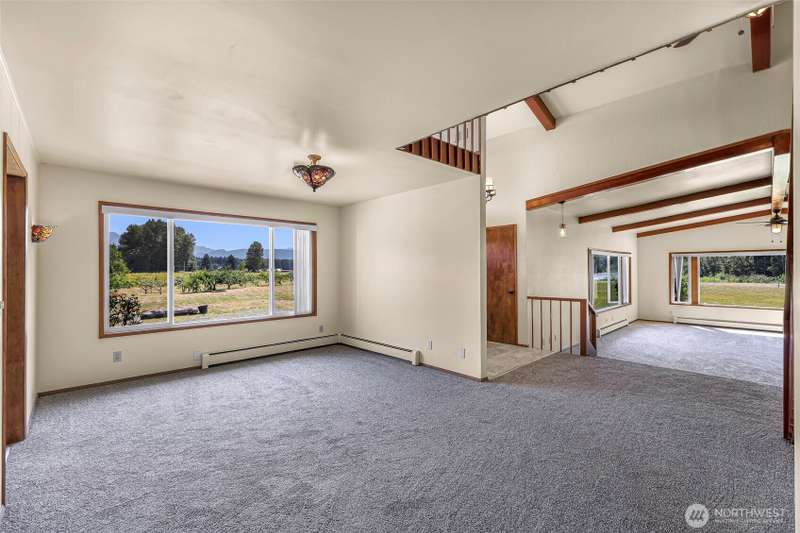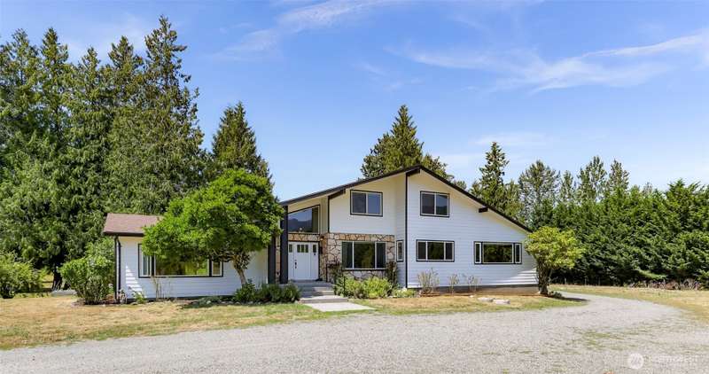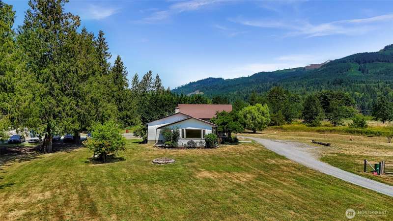 Nestled in a secluded setting, this expansive, fully remodeled home offers privacy and panoramic mtn views of Mt Baker and Twin Sisters. Ideal for hobby famers/animal lovers, the property features open pastures, shelters perfect for goats, sheep, etc. The driveway runs along the Nooksack river-high and dry-offering peace of mind without sacrificing beauty. This home boasts 6 beds, 3.5 baths, 2 newly remodeled kitchens and beautifully redone living rooms, or turn the basement into a 1 bed ADU. Updates include, fresh paint, new carpet, refinished trim and cabinets, stylish new light fixtures a new roof, windows and siding. Enjoy mature fruit trees, a riverside campsite, abundant storage and world class fishing. See broker remarks for more.