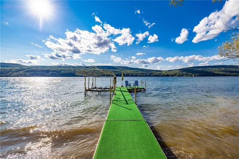 FULLY FURNISHED SPECTACULAR WATERFRONT CANANDAIGUA LAKE DREAM LODGE. THIS AMAZING CANANDAIGUA LAKE HOME IS SITUATED ON 165FT OF WATERFRONT. YOU'LL BE AMAZED BY THE BEAUTY & TRANQUILITY OF THIS HOME. UPON ENTERING YOU'RE GREETED WITH A SPACIOUS FOYER. CATHEDRAL CEILING, WOOD BEAM FAMILY ROOM COMFORTABLY ACCOMMODATES ALL YOUR FAMILY & FRIENDS. ADDITIONAL SEATING IN THE SPERATE LIVING ROOM WITH AN ADJACENT UPDATED FULL BATH ? INCLUDING CLAW FOOT SOAKING TUB. THE "WHITE & BRIGHT" KITCHEN FEATURES A BREAKFAST BAR, GAS STOVE, DISHWASHER AND DINING SEATING. AFTER A LONG DAY OF BOATING ON CANANDAIGUA LAKE IMAGINE RELAXING ON THE FULLY SCREENED OUTDOOR LIVING AREA. FEATURING OUTDOOR DINING, CHARMING SEATING AREA, AND 3 QUEEN SIZE BEDS. ON THE SECOND FLOOR THIS HOME HAS 3 PRIVATE BEDROOMS (2 QUEEN & 1 TWIN BED) AND AN UPDATED FULL BATH. STEP OUTSIDE TO ENJOY THE OPEN DECK OVERLOOKING YOUR PRIVATE BEACH. RINSE OFF IN THE OUTDOOR SHOWER ON THE HOT SUMMER NIGHTS. THIS AMAZING WATERFRONT PROPERTY OFFERS PLENTY OF BEACH ACTIVITIES, PRIVATE DOCK AND HOIST. TOTAL SLEEPING CAPACITY 11 (QUEEN AIR MATTRESS AVAILABLE AT ADDITIONAL COST). DAILY/WEEKLY/MOTHLY RATES AVAILABLE UPON REQUEST. $4.000/wk