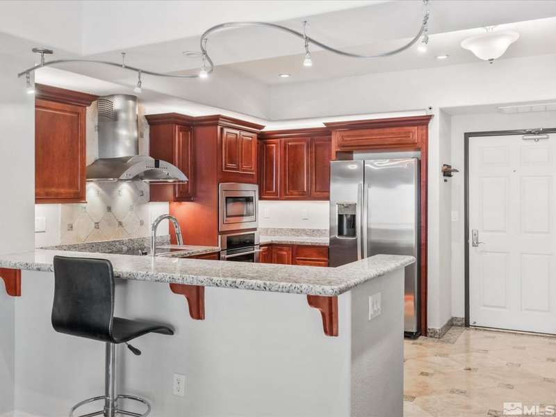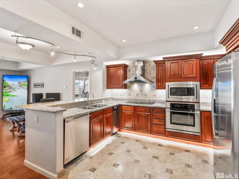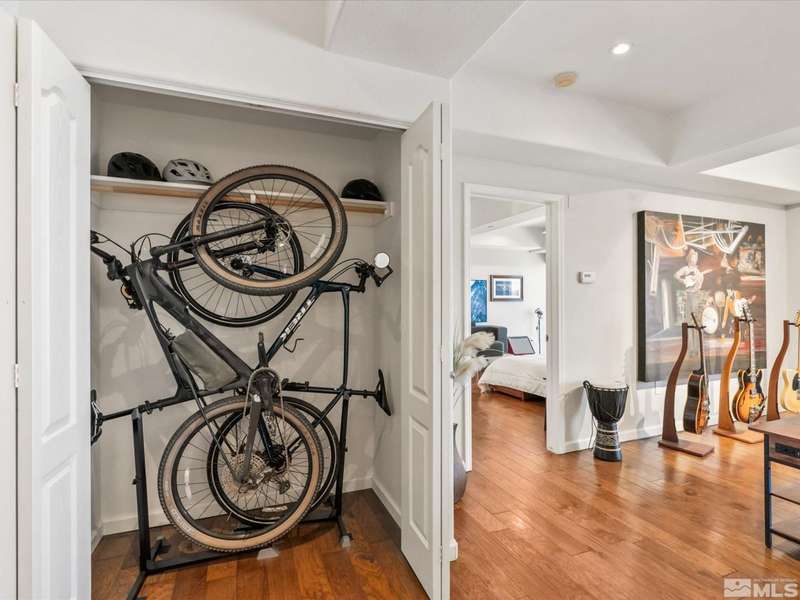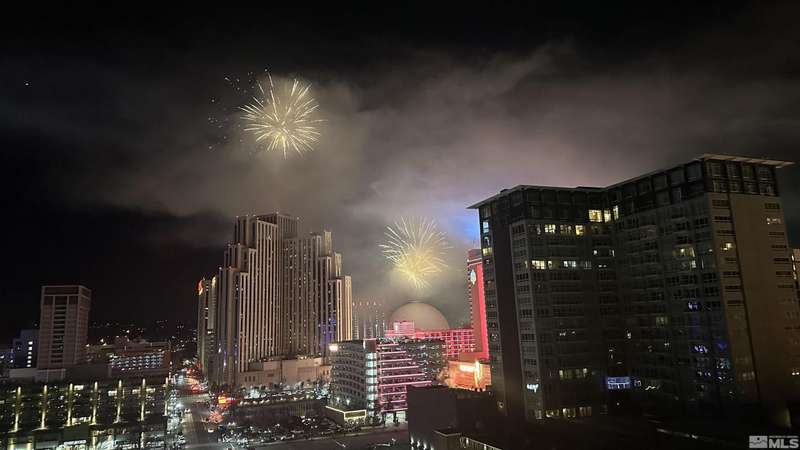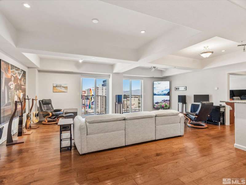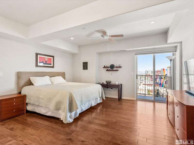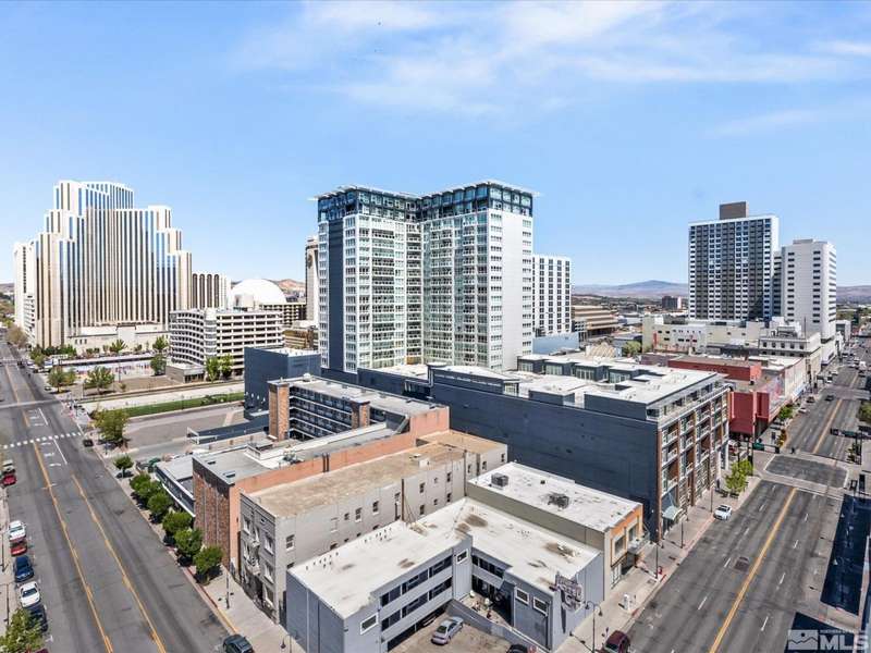Stunning 2-bed 2-bath condo in the heart of downtown Reno, offering 1500 sq. ft. of modern living on the 15th floor with breathtaking city views. This meticulously maintained unit features upgraded stainless steel appliances (including a new refrigerator), hardwood laminate flooring throughout, and an open-concept layout perfect for urban living. One of only two units with a dedicated 50amp charger in the garage for your EV. Just steps from the Truckee river. In-unit washer/dryer included in the sale., HOA amenities include in ground pool, hot tub, BBQ, gym, lobby and gated garage.