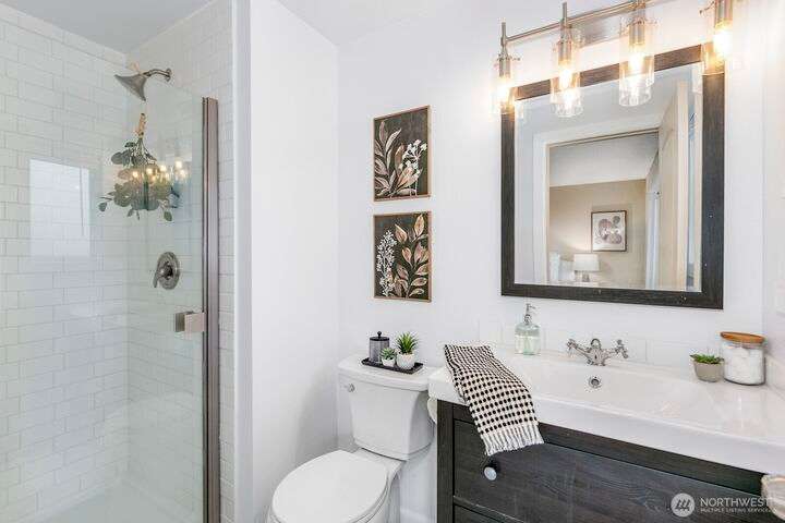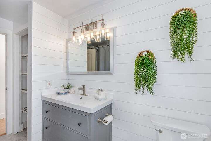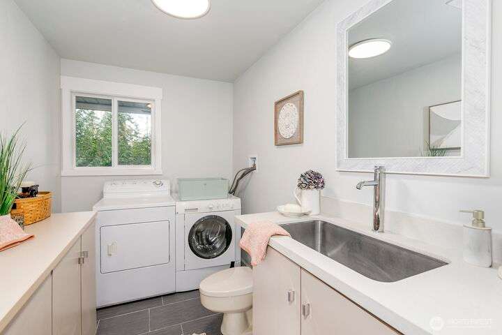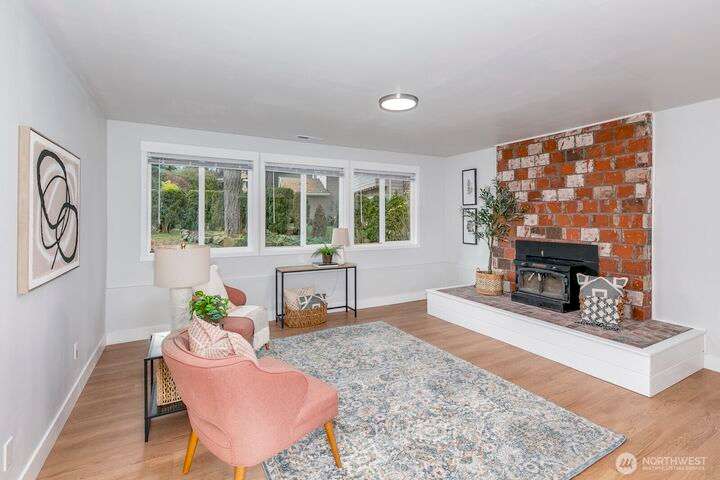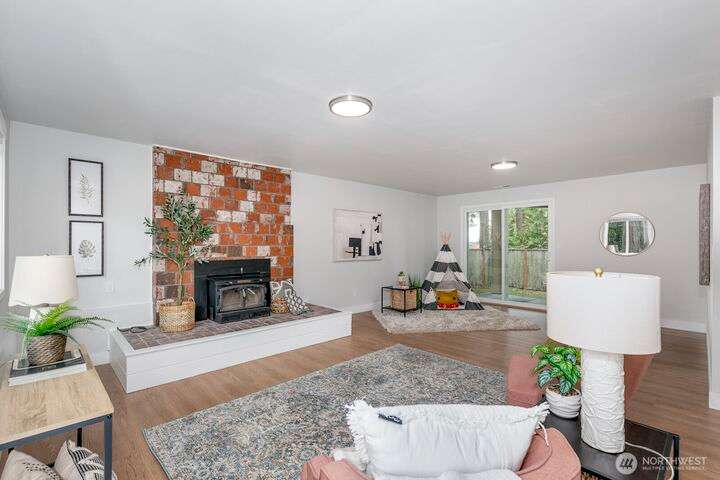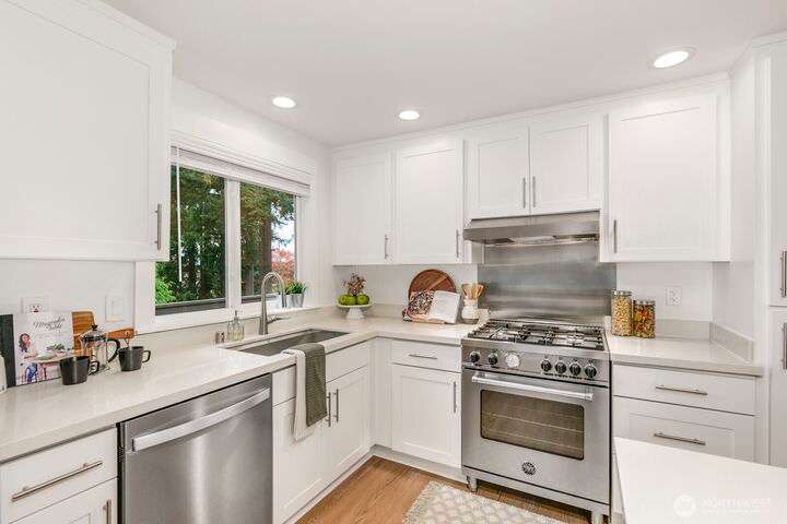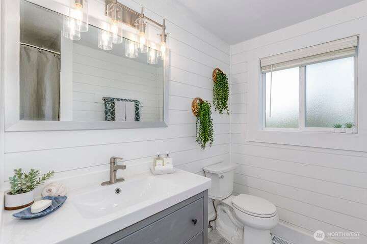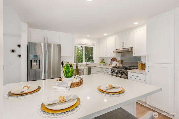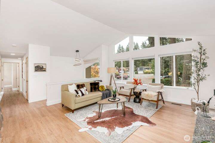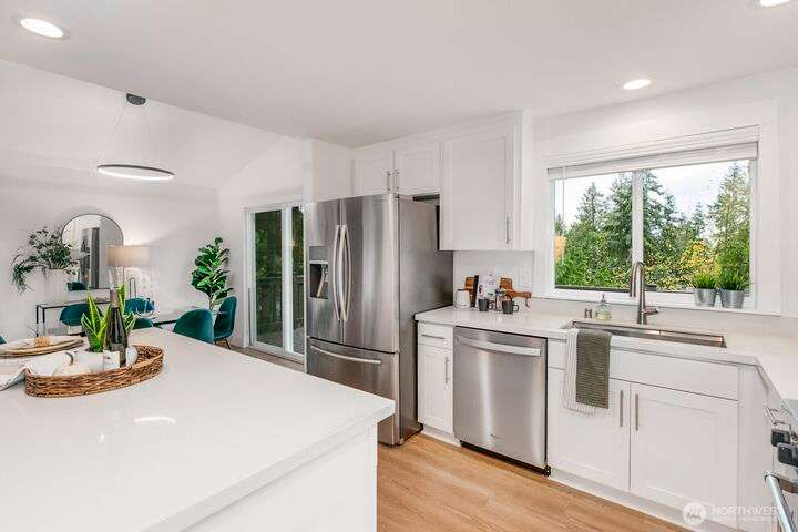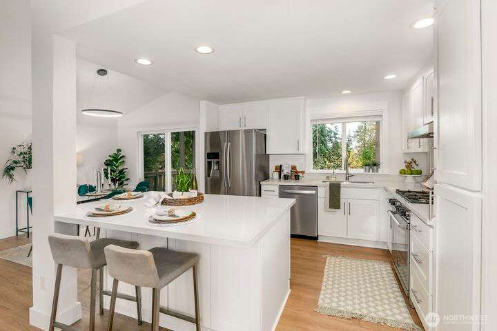 Gorgeous remodel in highly desirable Picnic Point. Floor to ceiling updates inside, plus newer roof, exterior paint & windows. Cul-de-sac living in the peaceful neighborhood of Woodsound where forest walking trails surround & arguably the best school in award winning Mukilteo district is down the street. 5mins to beach, shopping & EZ commuter options. Vaulted ceilings & large windows bring sunshine into this open living/dining/kitchen. Beautiful quartz counters, huge island & gas range make cooking a dream. Primary bedrm w/ensuite bath & access to back deck. Don't miss peak-a-boo views of mountains, sound & breathtaking sunsets. Rec rm is ready for fun, as well as waterproof patio space. Yard backs to greenbelt & has room to park RV/Toys.