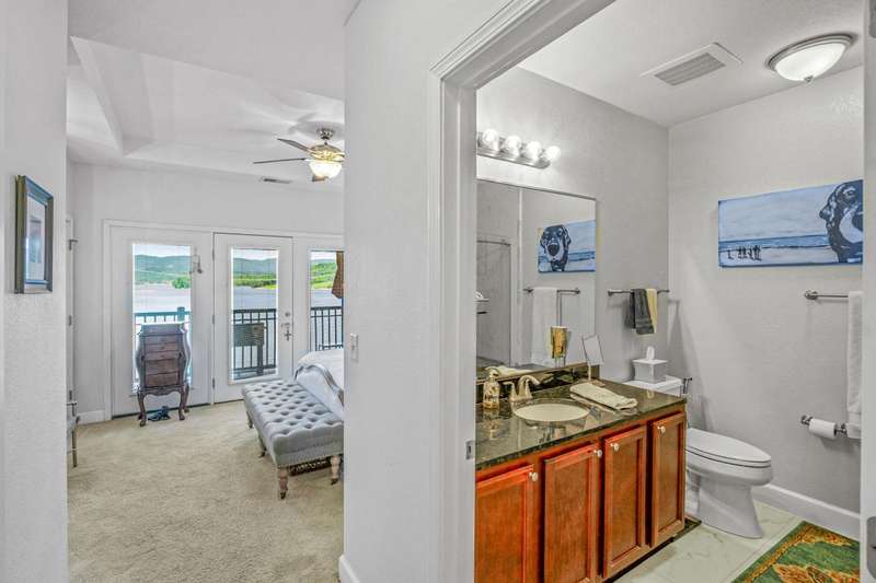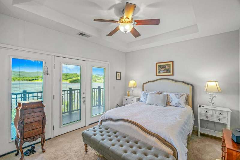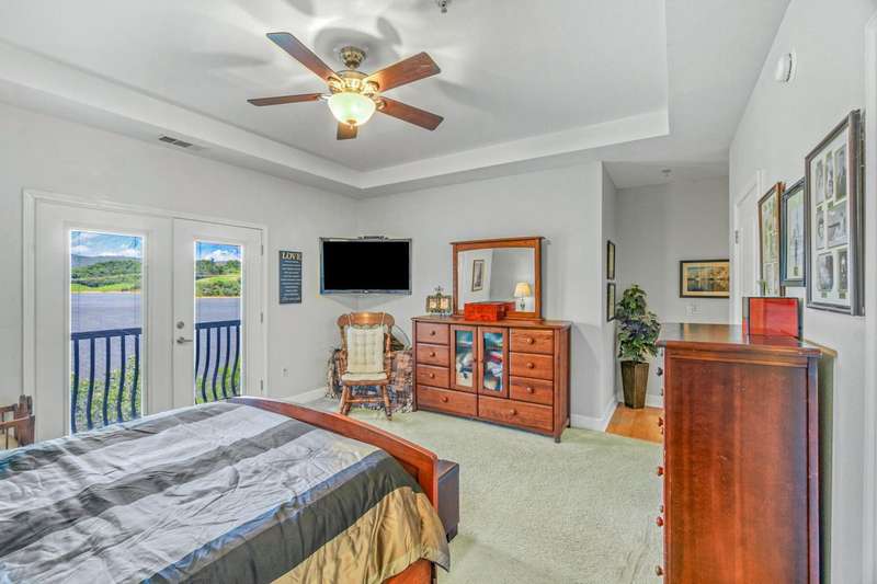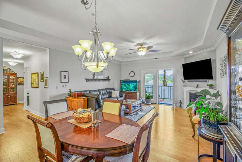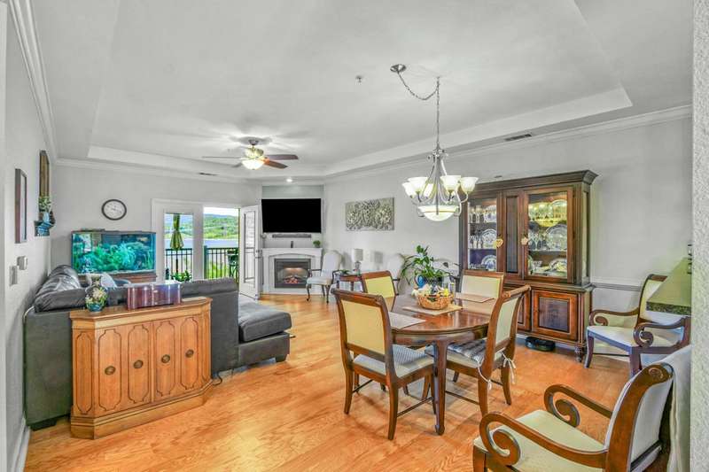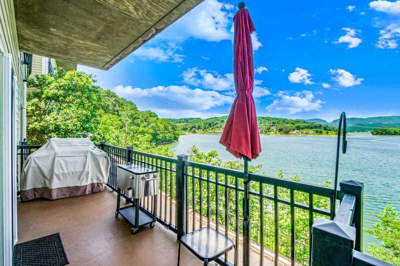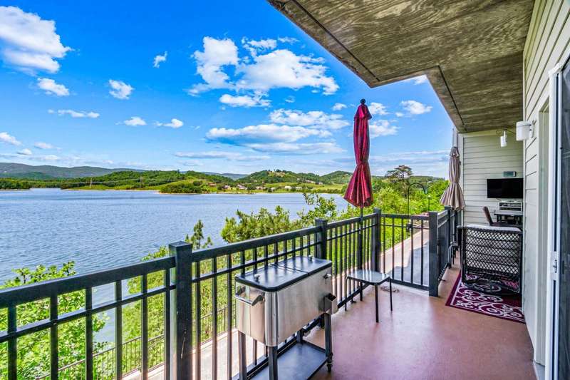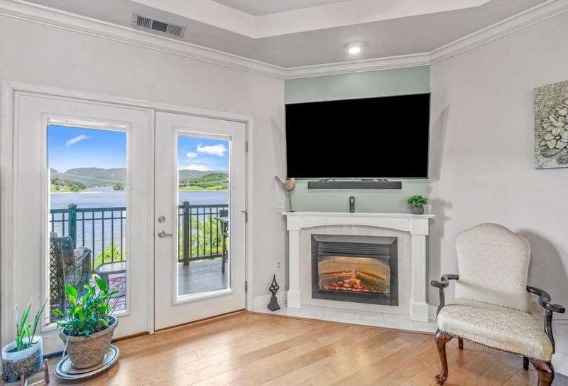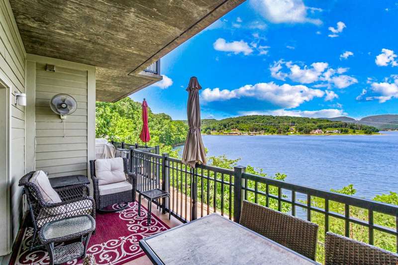 Perched on the banks of Cherokee Lake in a gated community is where this luxurious first floor walk up condo can be found. Upon entry it is evident that this units stands out from the crowd. Boasting beautiful blonde hardwoods throughout coupled with wide baseboards, tray ceilings, calming neutral colors and custom showers, this one is really one of a kind. Steppping into the kitchen the eye is immediately drawn to the lake view. Doing the dishes in the commercial grade sink isn't quite the chore is could be. Ample wood cabinetry and granite counters, under cabinet lighting and the adjustable shelf pantry are also quite appealing. The view beckons from the minute a step is taken inside. The living/dining combo are quite spacious and offer an electric fireplace with a custom tile surround. The view from the balcony doors provide a peaceful luxury and makes the room appear even more spacious. Bedroom 2 is a paradise all its own with its custom vanity, balcony access with, again, that lake view. The en suite provides quiet luxury with its custom glass shower and tilework, multiple shower heads. The master bedroom does not disappoint with its oversized walk-in closet, again, that lake view, an en suite featuring custom glass shower, custom tilework, massive mirrored medicine cabinet, double bowl granite vanity, soaker tub and even a towel warmer. Bedroom 3 is spacious and also has an attached bathroom. Other custom details include the foyer table built in and the french writing desk in the front bedroom, retractable screens on all balcony and front entry doors, custom blinds on the balcony doors. Details that aren't visible, but there, nonetheless, include extra insulation around the balcony doors, in the fireplace wall and around the high windows in the master suite. This fantastic unit also comes with a garage. The HVAC and water heater were replaced in 2019. Owning this lakeside condo means enjoying the lake life without all the work maintaining it. HOA fees cover exterior maintenance, grounds upkeep, water, septic, trash. Owner is responsible for windows, doors, HVAC and all interior. electric and internet. The amenities offered are pool, clubhouse, rec/gathering room. This is one you owe it to yourself to check out and make it yours. Its like being on vacation everyday!