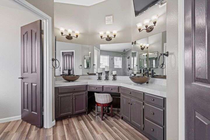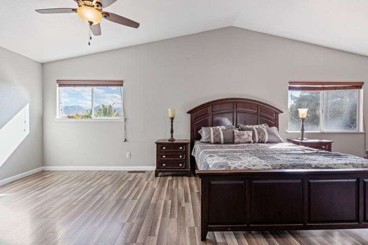 Welcome to this stunning two-story home located just a short distance from the local park. Designed with entertaining in mind, the heart of the home is the expansive chefs kitchenan elegant space perfect for gatherings and everyday living. Offering five spacious bedrooms, the primary suite features its own bonus area ideal for a private retreat, reading nook, or relaxation space. The primary bathroom includes a generous vanity and ample room for comfort. Downstairs, you'll also find two bedrooms, perfect for working from home or creating a cozy flex space. The home is complete with a three-car garage, abundant street parking, and is situated across from a peaceful open field. With leased solar, this property blends modern efficiency with style and functionready to welcome its next owner.
