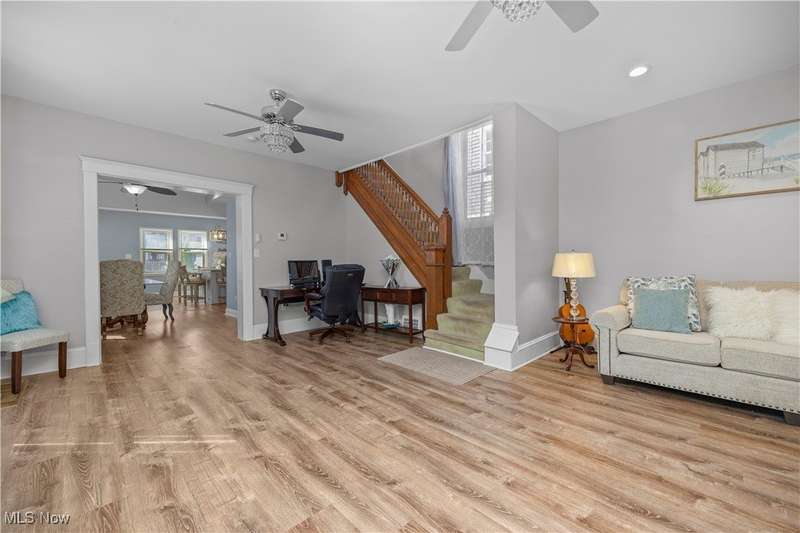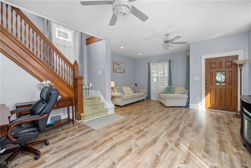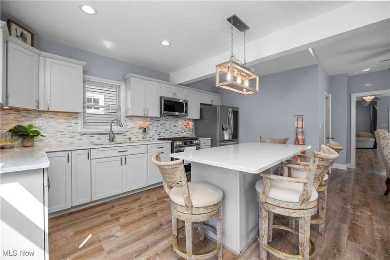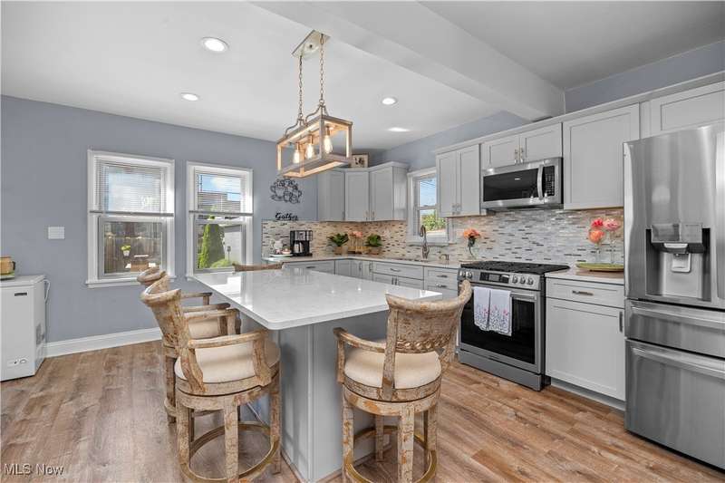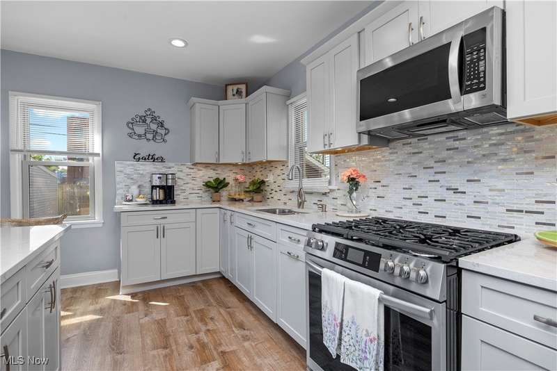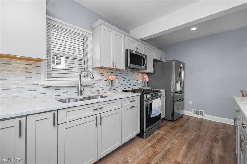 A charming and modern home awaits you in the highly sought-after Detroit Shoreway neighborhood on Cleveland's west side. This spacious property has been meticulously renovated from top to bottom, boasting high-end finishes and modern amenities for true turn-key living. It's ideally located just minutes from Edgewater Beach and Downtown Cleveland. Step inside to an open-concept first floor, flooded with natural light. It features luxury vinyl plank flooring, an amazing kitchen with new stainless steel appliances, and modern fixtures throughout, making it perfect for both everyday living and entertaining. The first floor also includes a full bathroom and laundry room combo. A large unfinished basement provides ample space for storage and utilities. Upstairs, you'll find all three bedrooms, a modern full bathroom, and fresh, neutral paint with contemporary touches throughout. The third floor offers a massive attic, ready to be finished into an additional bedroom or a creative space for work or leisure. Outside, enjoy your fenced-in backyard, complete with an oversized two-car garage and a patio area. With quick and unique access to Lake Erie and Edgewater Park and the new boathouse pavilion just moments away, you can enjoy waterfront strolls, breathtaking sunsets, and endless outdoor adventures, activity rentals, and summer programming now put on by Cleveland Metroparks. Close to the newest shops, top-rated restaurants, and vibrant nightlife are all within walking distance! This beautifully updated home in a prime location won't last long! Schedule your tour today!