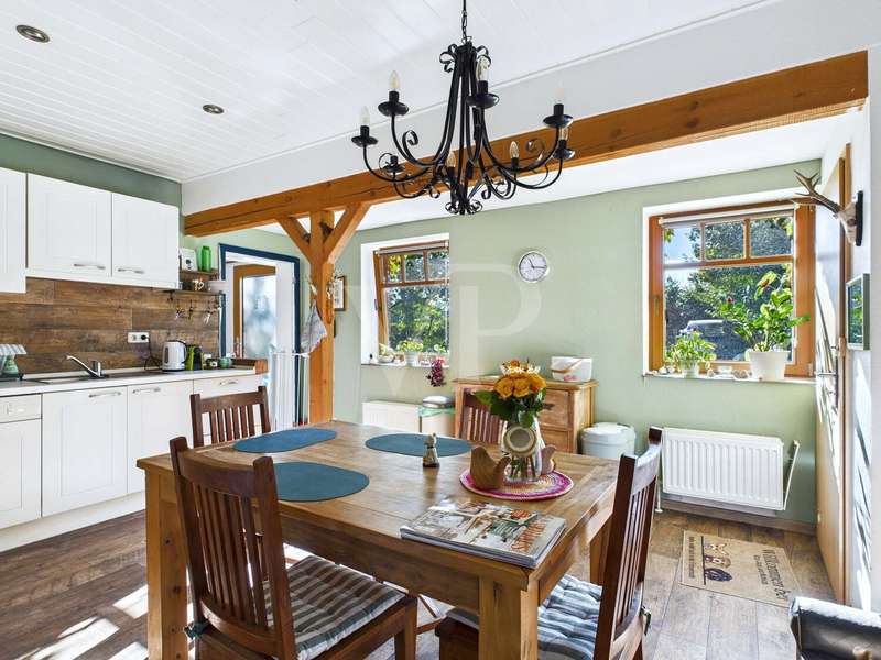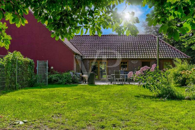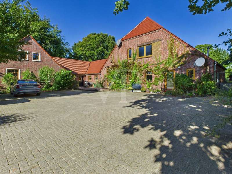 Welcome to Aurich-Brockzetel - this well-kept two-family house with two separate residential units, spacious garden areas and versatile usage options is situated in a quiet location. The original part of the building dates back to the 1950s, while the larger residential unit was extended in 2000 to create a large living space. Numerous modernizations have been carried out since then, so that today the property is in a solid and attractive overall condition. Residential unit I comprises around 190 m² of living space and welcomes you with a bright hallway area. From here, the way opens into the spacious living and dining area with open kitchen - the heart of the house, which has a particularly cozy atmosphere thanks to the underfloor heating and wood-burning stove. Next door are two bedrooms, a modern shower room and a guest WC. A third bedroom with dressing area completes the space on the first floor. Two further rooms await you on the top floor, ideal for use as retreats or work areas. In 2024, all painting work was carried out with gypsum plaster and new floor coverings, giving the rooms a fresh, contemporary look. Floor-to-ceiling windows provide plenty of light and open up views of the terrace and garden. Residential unit II offers approx. 130 m² of living space and is ideal as a separate living area, for renting out or for use as a kennel under the existing permit. On the first floor there is an eat-in kitchen, a living room, a bedroom and a full bathroom with bathtub. On the top floor, a large living room completes the space on offer. This area has also been extensively modernized in recent years: Windows, doors and patio elements were partially replaced around 2022, and work was also carried out on the roof, insulation and electrics. A covered terrace with a view of the enclosed garden (steel mesh fence, approx. 2 m high) offers ideal conditions for keeping animals or spending relaxing hours outdoors. Both residential units have their own garden areas, each enclosed and lovingly landscaped. Old trees provide shade and lend the property a mature charm. Other features include a district heating supply with a pump that will be replaced in around 2022, a modern sewage treatment plant, carport and workshop with a power connection. A gas boiler is also available as an option. The driveway is accessed via an electric gate, fiber optic connection is in preparation, internet access is currently via satellite. This two-family house combines solid construction, modern technology and a generous amount of space - ideal for families, multi-generational living or a combination of living and working. A home with space for ideas, nature and quality of life.