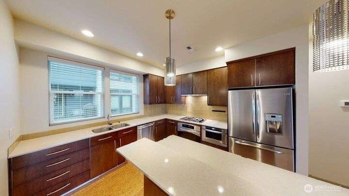 Modern townhome in the heart of downtown Walla Walla! This home features an inviting open-concept layout highlighted by an abundance of natural light, gas fireplace, and a balcony off the dining room—ideal for relaxing or entertaining.The kitchen features stainless steel appliances, quartz countertops, sleek finishes, and an island with additional seating. Cork flooring flows throughout the main level and stairs, carpeting adds comfort to the bedrooms. Convenient upstairs laundry with stackable washer/dryer. Double-car garage for secure parking and storage. Perfect for first-time buyers, a second home, or an investment property, this home was designed for low-maintenance living just a short distance from shops, restaurants, and wineries.