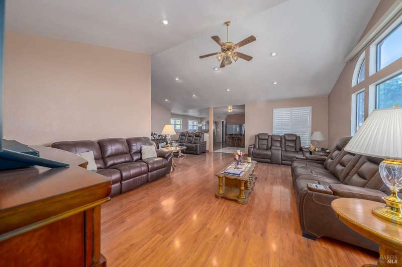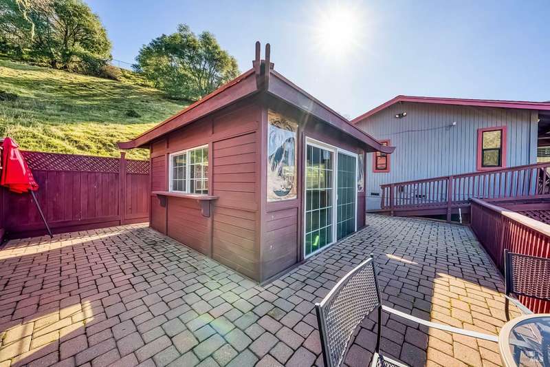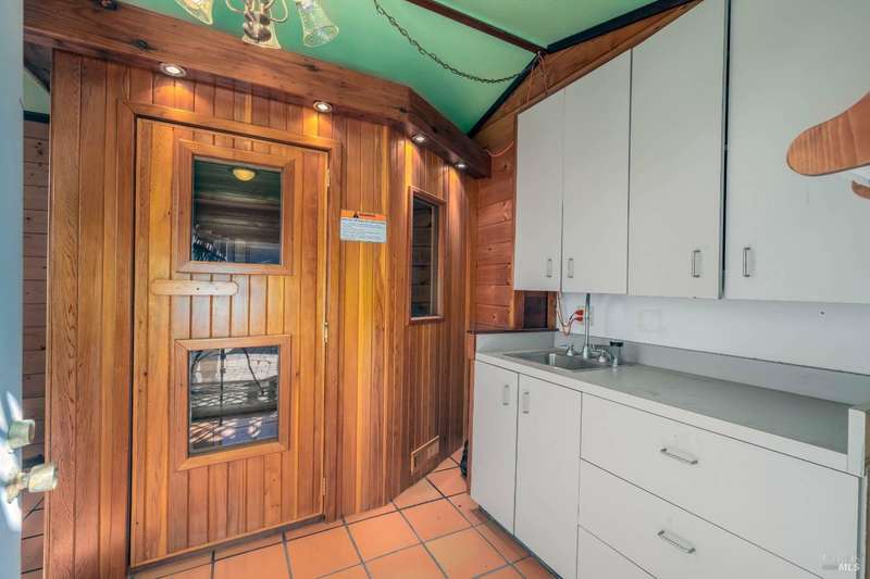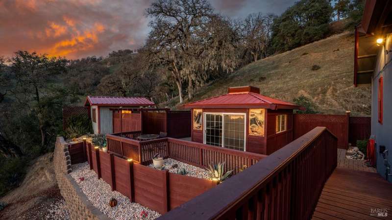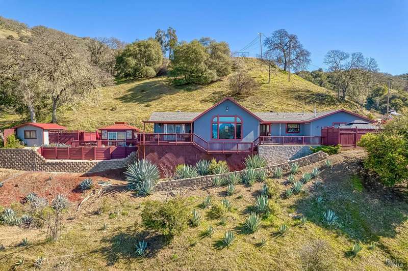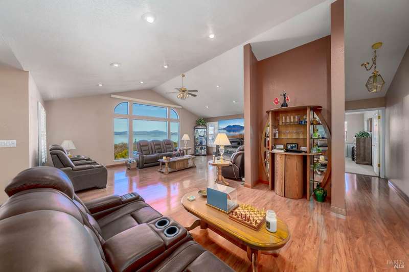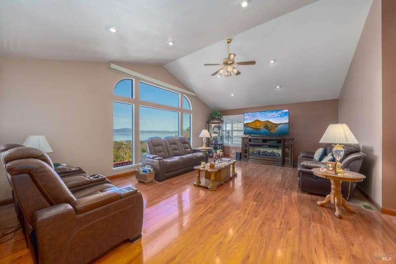 This exceptional estate features meticulously landscaped grounds, a beautiful 2479-square-foot home, a ten person hot tub and custom sauna. Enter through the gate and up the illuminated driveway to the detached garage. It is fully equipped with tool storage and workshop space and holds three cars. Continue on up the driveway to the elevated views of the main residence which includes three bedrooms, two bathrooms, expansive seating areas in the living room, granite kitchen counters and recessed lighting throughout. The lower level has been turned into an 800 sq ft game room with pool table, wet bar and air hockey, all included with the purchase. Enjoy views of Clearlake from the living room and primary bedroom, and the large covered hot tub found in the detached structure. Don't forget the custom built sauna in its own outbuilding. Outdoor speakers enhance entertainment options found around the home, under the gazebo and on the deck. The landscaping utilizes a well-fed sprinkler system, and low-voltage LED lighting illuminates the exterior. In addition to Pacific Gas and Electric service, leased solar power supplements the home's energy needs; propane provides gas service. The property is fully furnished, it is equally suited for both private enjoyment and entertaining.