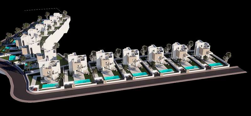 Modern detached villas situated in Finestrat, Spain, known for its picturesque setting nestled between the mountains and the Mediterranean Sea. It offers a mix of natural beauty, historical charm, and modern amenities, making it an attractive place to live for many people. The town itself has a quaint old town area with narrow streets, traditional Spanish architecture, and historic buildings. Additionally, Finestrat benefits from being close to popular tourist destinations such as Benidorm and Alicante, providing access to a wide range of recreational activities, dining options, and cultural experiences. The climate in Finestrat is typically Mediterranean, with mild winters and hot summers, which appeals to those who enjoy outdoor activities and beach lifestyles. Overall, Finestrat can be a lovely place to live for those seeking a blend of Spanish culture, natural beauty, and modern conveniences.