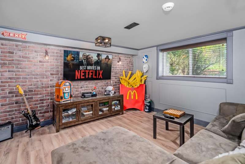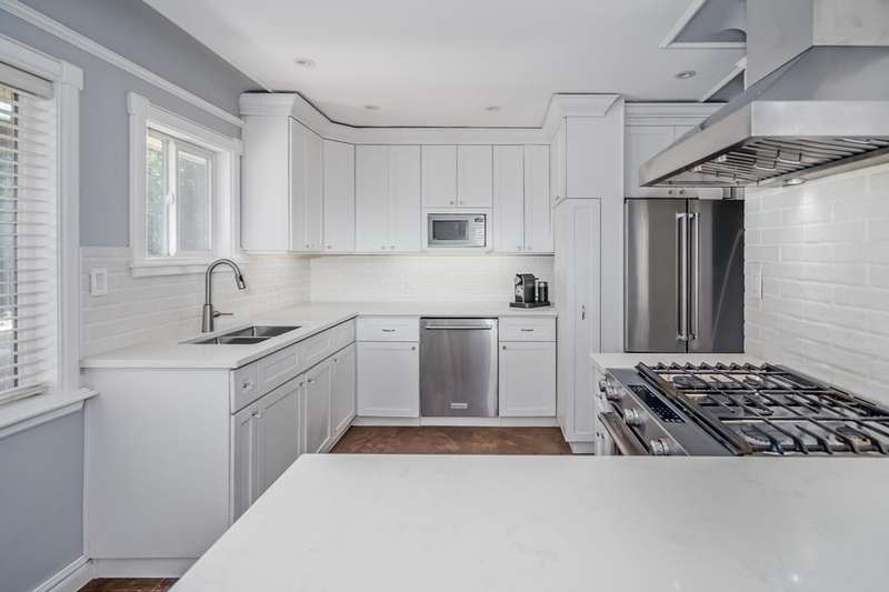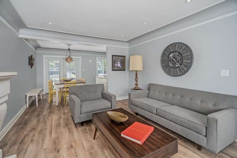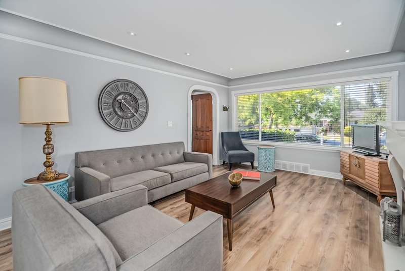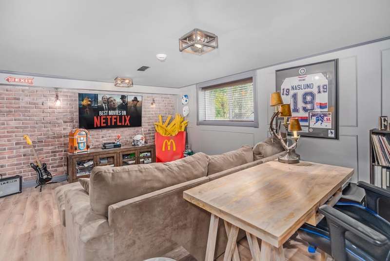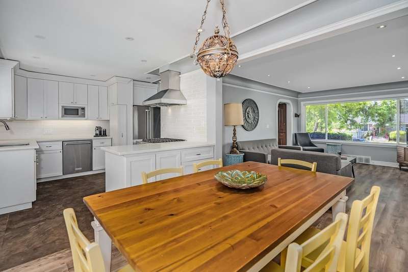 Welcome to this delightful 4-bedroom, 2-bathroom rancher, ideally situated just steps from a local elementary school and the prestigious St. Thomas More private school. Perfect for families, this home offers a traditional layout featuring a spacious living and dining area, and an updated white kitchen complete with a gas stove/oven and stainless steel appliances. The primary bedroom includes a generous walk in closet, while the home offers great flexibility with 2 bedrooms on the main floor and 2 additional bedrooms in the fully finished basement. Downstairs, you'll also find a large family room-perfect for movie nights or kids playtime. Additional highlights include laminate flooring throughout, stylish new light fixtures, backyard oasis. Detached single car garage w/ laneway access.