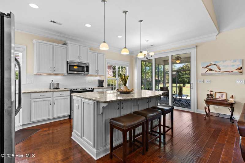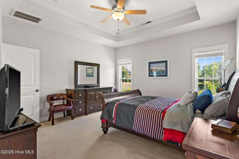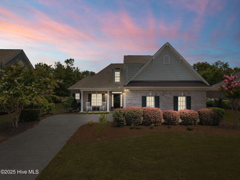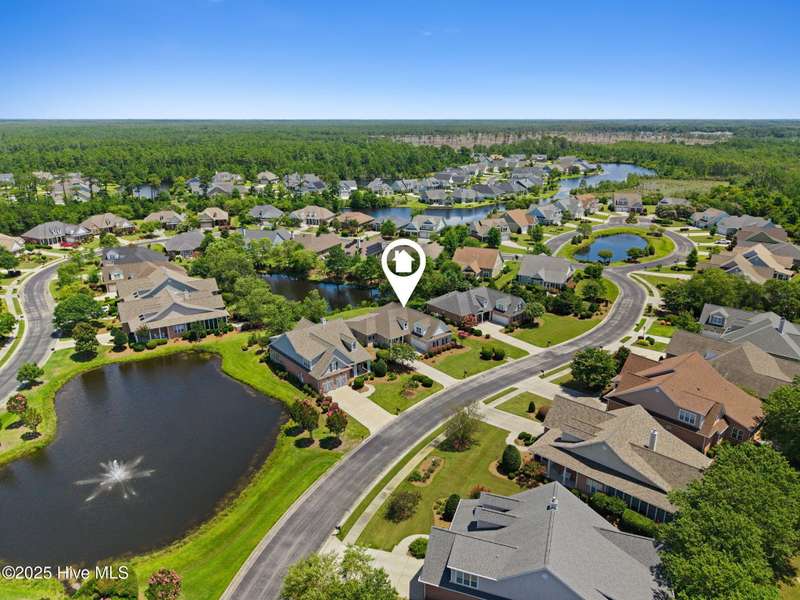 The all-brick former model home in the Regency Lakes section of the Player's Club offers peaceful pond views and luxurious coastal living. The open floor plan features a spacious living room with fireplace and built-ins, a stylish kitchen with stainless steel appliances, and a sunroom, patio and firepit—all with tranquil water views. Plantation shutters add timeless charm throughout. Upstairs, a large bonus room/4th bedroom includes a full bath and closet. Enjoy walking-distance access to the Player's Club pool, tennis, croquet, and more. St. James Plantation offers 81 holes of golf, four clubhouses, multiple restaurants, resort pools, tennis, pickleball, marina, kayak launch, and a private beach club on Oak Island.