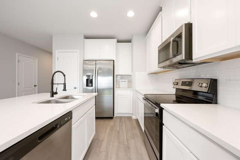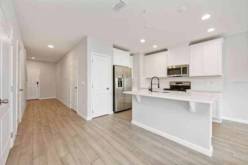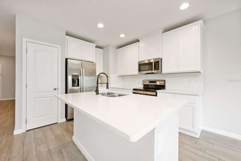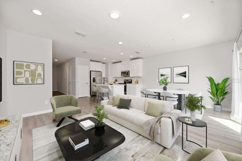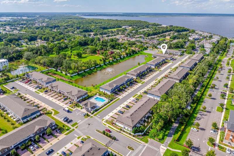 One or more photo(s) has been virtually staged. Ask about a lender provided RATE BUY-DOWN CREDIT on this home! Seller may consider buyer concessions if made in an offer **WELCOME HOME** Built in 2023, this MOVE-IN READY townhome in the desirable Towns at Lake Monroe Commons offers modern comfort, style and convenience in one of Sanford’s newer communities! Meticulously maintained and in excellent condition, this home features thoughtful UPGRADES and a fresh, on-trend design that create instant appeal. From the moment you arrive you will appreciate the attractive CURB APPEAL, enhanced by manicured landscaping, a paver driveway, even the garage was considered and has an epoxy floor! Stepping inside, you will find WOOD LOOK TILE FLOORING throughout your main living areas, paired with plush carpet in the bedrooms for a warm and inviting feel. The OPEN CONCEPT floor plan is filled with natural light thanks to sliding glass doors that frame a relaxing WATER VIEW and open to a patio. The spacious living and dining areas flow seamlessly into a stylish kitchen – complete with STAINLESS STEEL APPLIANCES, a subway tile backsplash, pantry storage, ISLAND with bar seating, upgraded faucet, and recessed lighting. Upstairs, the thoughtful layout places the PRIMARY SUITE at the front of the home for added privacy. Your retreat features a generous WALK-IN CLOSET and well appointed en-suite bath with a dual sink vanity and a walk-in shower, updated in 2024 with new shower glass. At the back of the home the secondary bedrooms share a full guest bath, creating a smart separation of space. A convenient second floor laundry keeps chores simple, while a half bath on the main level makes hosting guests effortless. Amenities include a sparkling COMMUNITY POOL just down the street, and the location can’t be beat. Minutes from the Sanford RiverWalk, Fort Mellon Park, Lake Monroe, Downtown Sanford, and the Central Florida Zoo & Botanical Gardens, you will have endless options for dining, shopping, and recreation. Easy access to SR 417 and I-4 also makes commuting a breeze. This is your opportunity to own a like-new townhome with updates already in place, a water view to enjoy daily, and a LOW MAINTENANCE lifestyle in one of Sanford’s most convenient areas. Every detail has been designed for both comfort and style – clean, bright, and completely move-in ready – call today to schedule a tour!