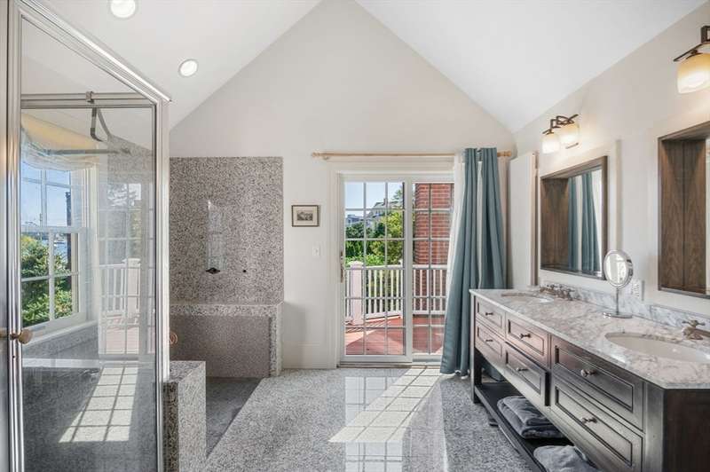 Seaside Colonial offers fabulous ocean/harbor views & easy access for swimming & kayak/paddleboards. This 5-bedroom, 3.5 bath spacious home is located just steps away from both Little Harbor & Marblehead Harbor. Private rear fenced in yard is spacious & level & is home to mature plantings, bluestone patio & custom gazebo. Interior is spacious, w/ open floor plan that includes fireplaced Family Room (23X17) & fireplaced Library (23x12) w/ custom built-ins and shelving. Expansive eat in kitchen w/ custom cabinets, wainscotting & crown moldings. Mudroom access from rear garden is convenient. Luxurious Primary bedroom suite features drop dead water views, an expansive bath, walk-in closet & direct access to a furnishable roof top deck w/ M'head Harbor views. Additional 4 bedrooms offer some vaulted ceiling height, skylight, convenient access to full baths & laundry. Basement is full & great for storage & casual recreation. Parking is easy & generous. Note: Improvement list attached in MLS.
