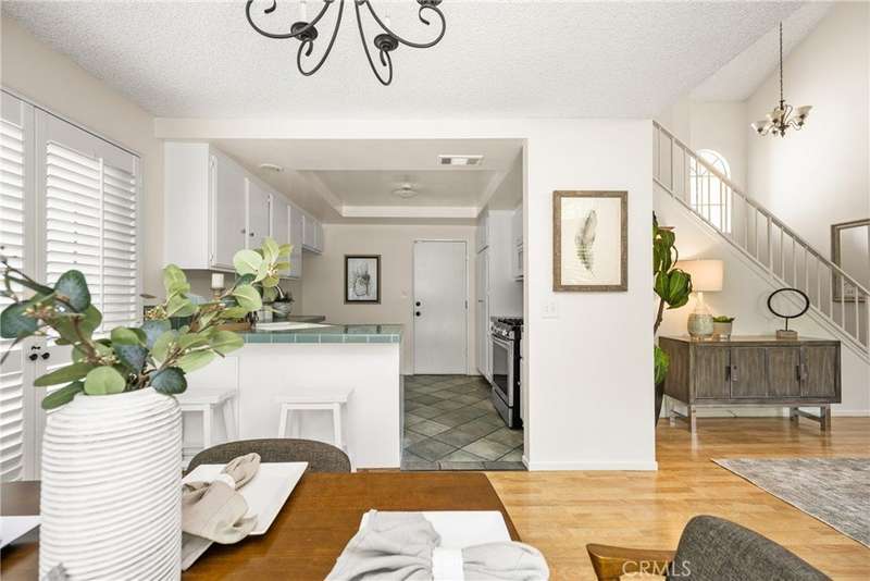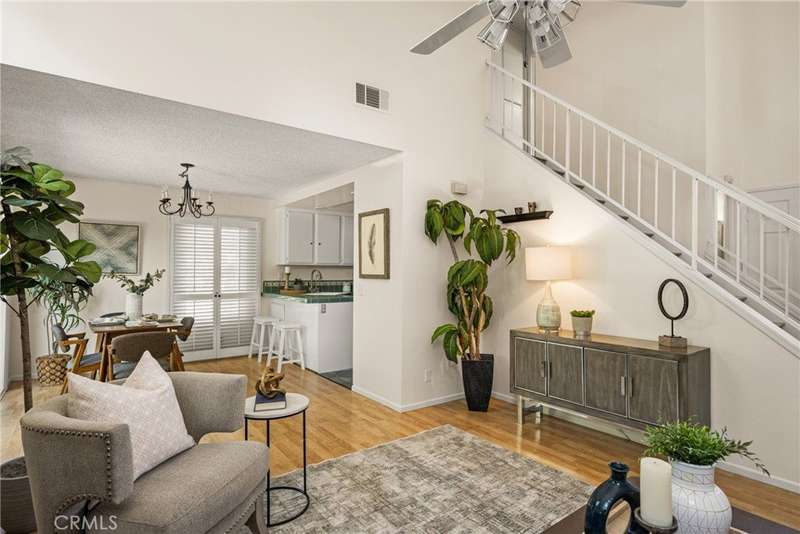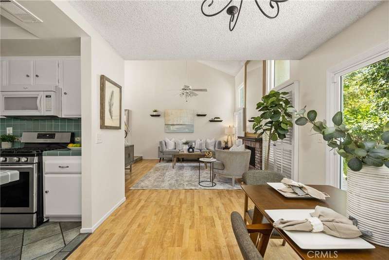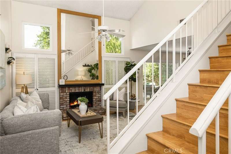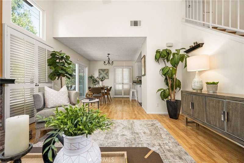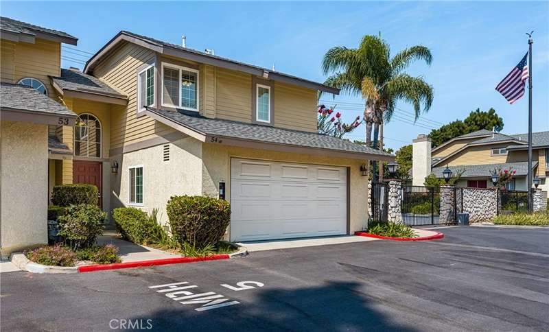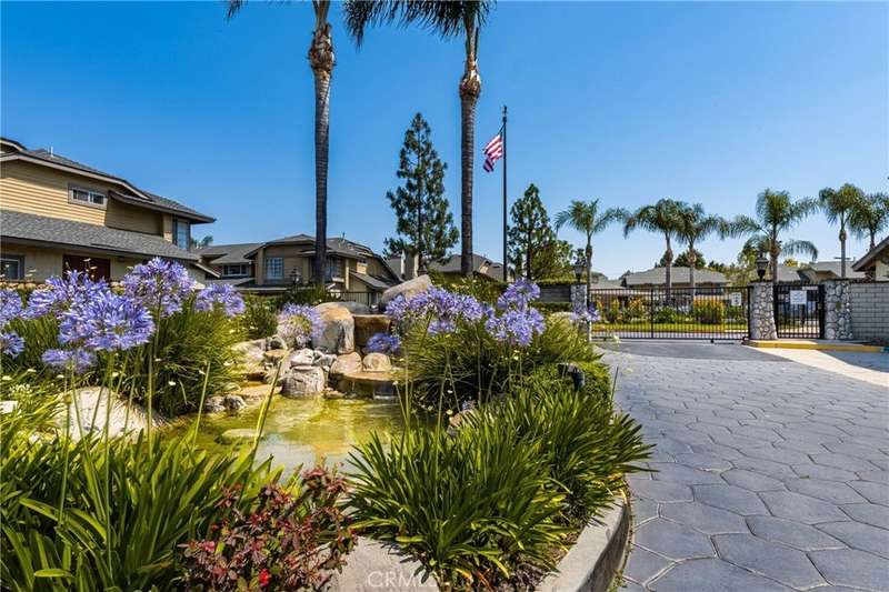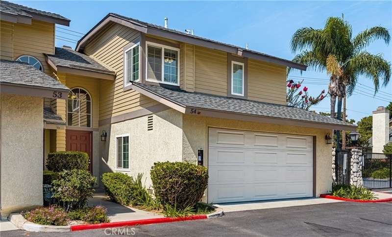 Featuring a sought-after location in the heart of Old Towne Orange, this rarely available attached, Single Family Residence end unit offers unparalleled convenience and charm. Nestled within the exclusive Hampton Court Gated Community, the well-designed open concept floor plan epitomizes the easy-living Southern California lifestyle. Step inside the well-maintained residence and discover a large welcoming living and dining area with vaulted ceilings and cozy gas fireplace, creating an inviting atmosphere for relaxation, and entertainment. Laminate floors flow seamlessly throughout the Living & Dining areas, leading to the sleek kitchen equipped with all the necessary appliances that the chef of the house would require. A Powder Bath is conveniently located on this level as well and easily accessible for friends and family. A French slider provides access to the private rear patio that is perfect for entertaining or simply unwinding after a hectic day with a chilled summer beverage or warm winter drink. Ascend the staircase to the second level and find two generously sized bedrooms, each with vaulted ceilings, both flooded with natural light. The full bath has recently been remodeled and is equipped with all the necessities. The attached garage has direct access to the home and provides convenient, secure parking for two cars as well as additional storage opportunities. Dual-pane vinyl windows throughout and upgraded HVAC provide extra comfort. HOA amenities include a large saltwater pool, spa, clubhouse, and manicured grounds. A few short blocks away enjoy the cultural and sporting events of Chapman University, Musco Center for the Arts, Hilbert Museum, MetroLink, and the many shopping and dining choices that the Old Towne Plaza District has to offer. Stroll the iconic Old Towne Historic District and marvel at the architectural treasures of the beautifully maintained homes. Welcome to Orange & the best it has to offer!