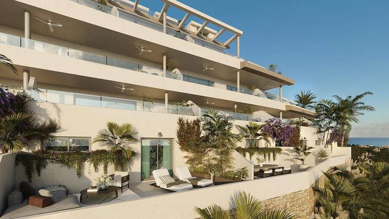 These new apartments with stunning sea views focus on privacy and comfort and provide generous open plan interiors with high quality materials used in construction and finishes. The residences also boast large covered and uncovered terraces. The homes will come equipped with fully fitted kitchens with furniture and branded appliances, cold and hot air conditioning, hot water production by means of high efficiency aerothermal equipment. Each apartment will have two parking spaces with a pre-installation of a charger for electric vehicles and a spacious storage room.